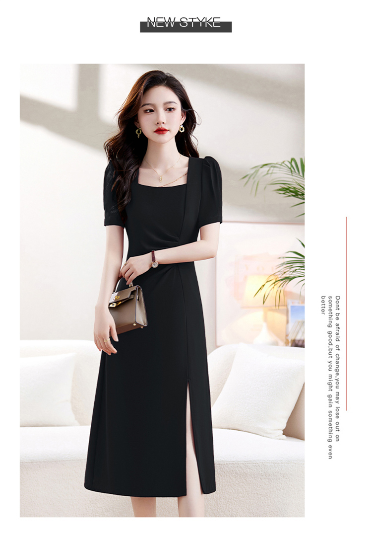杭州大牌真絲連衣裙女裝夏季新款方領氣質高腰短袖純色桑蠶絲裙子