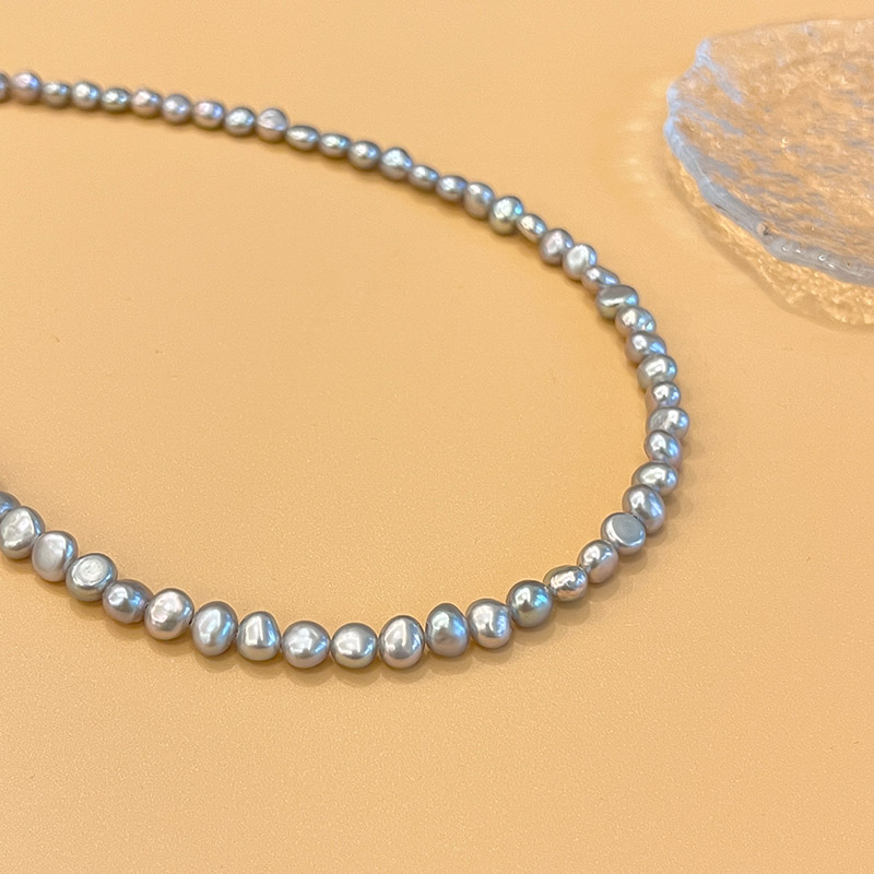 mimi灰色天然淡水巴洛克珍珠鎖骨鏈