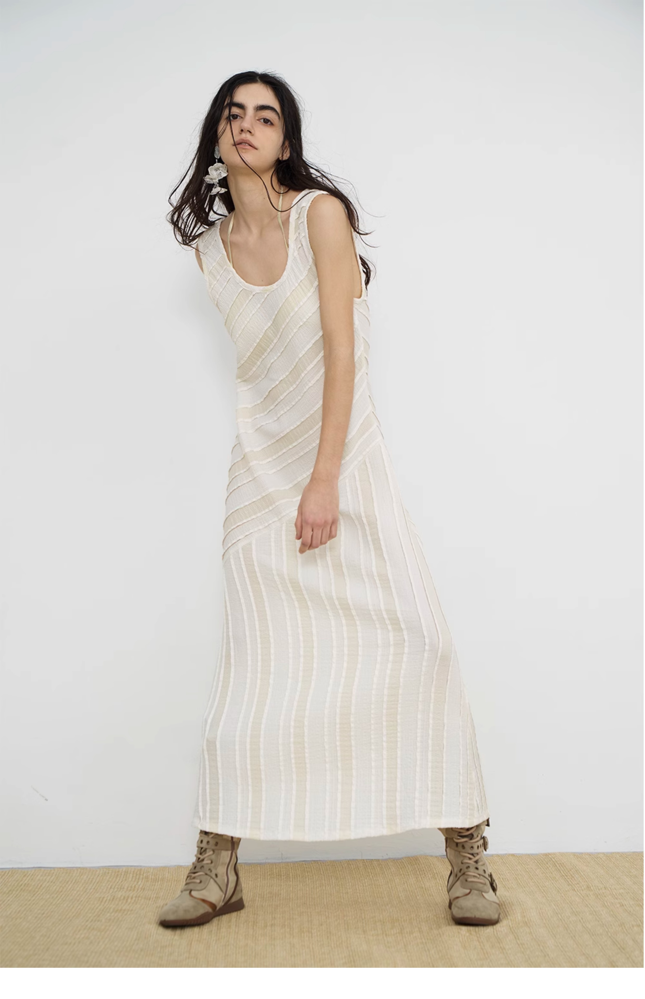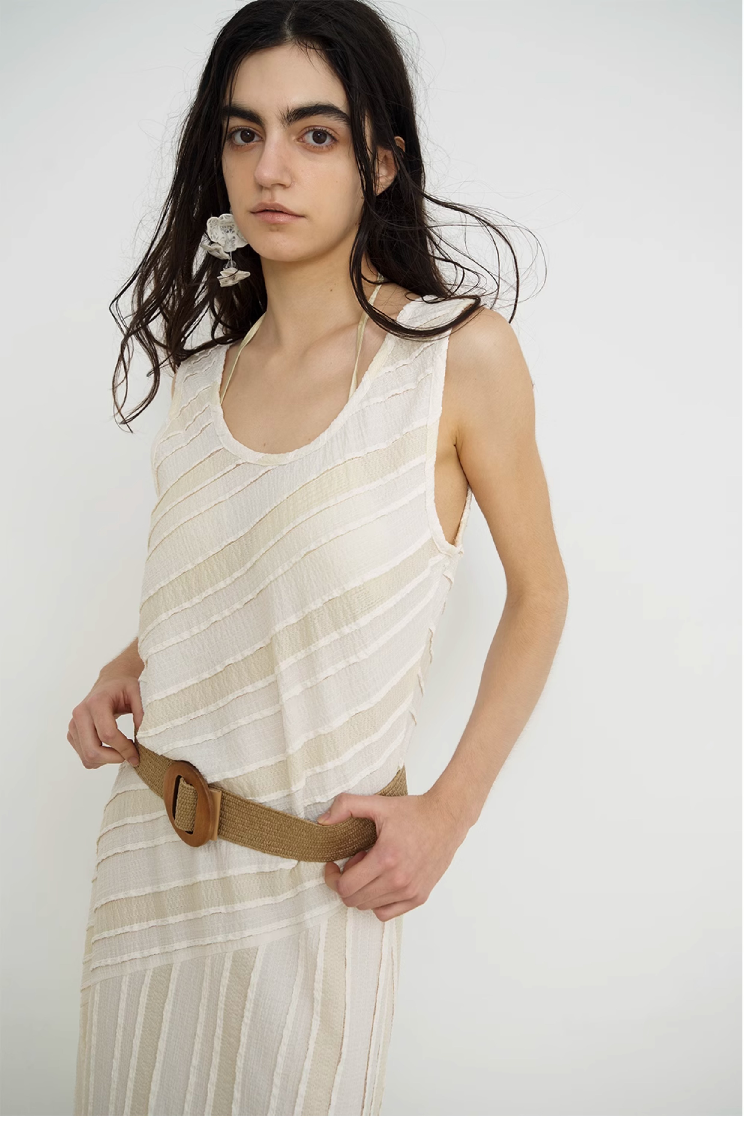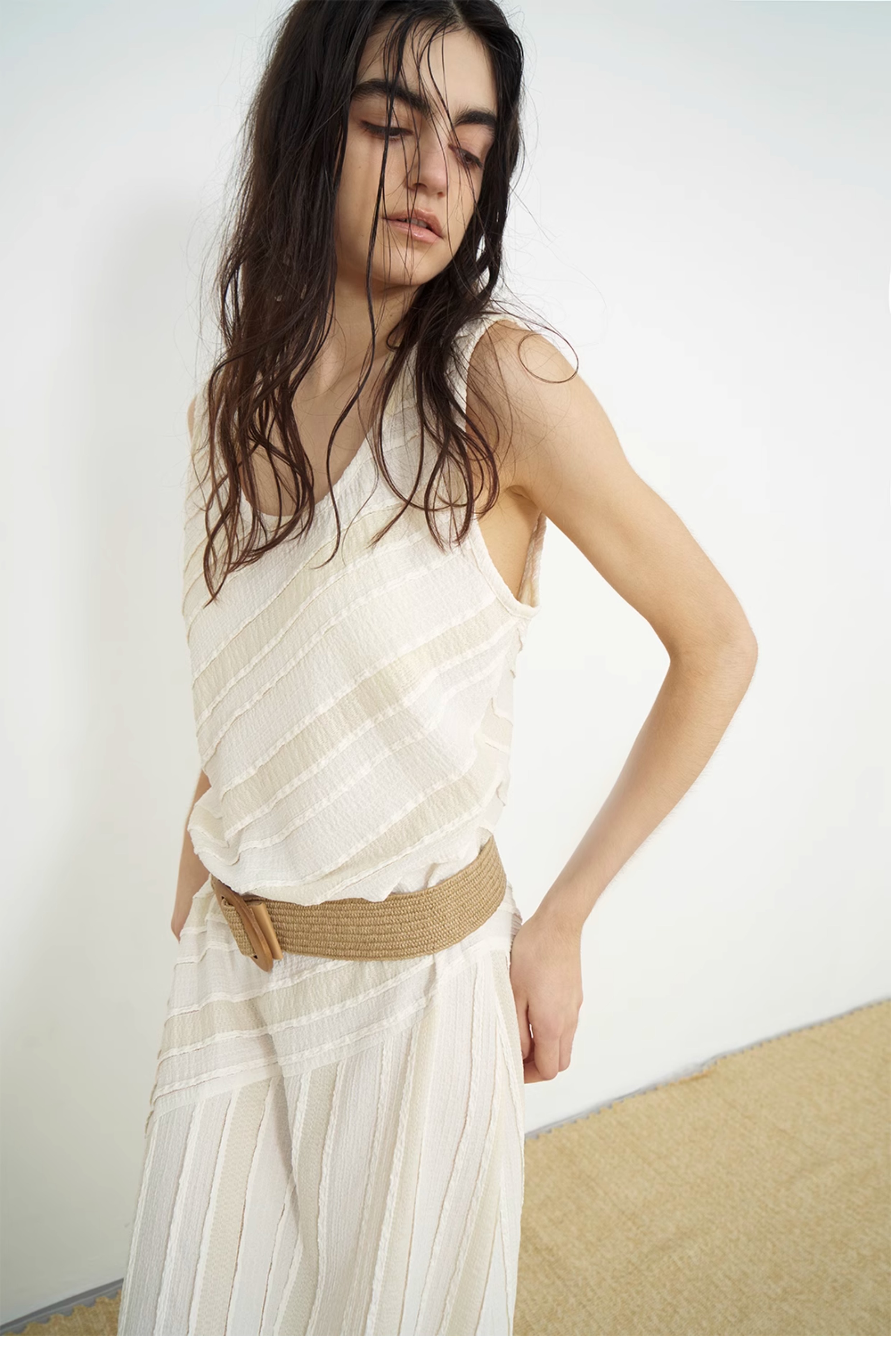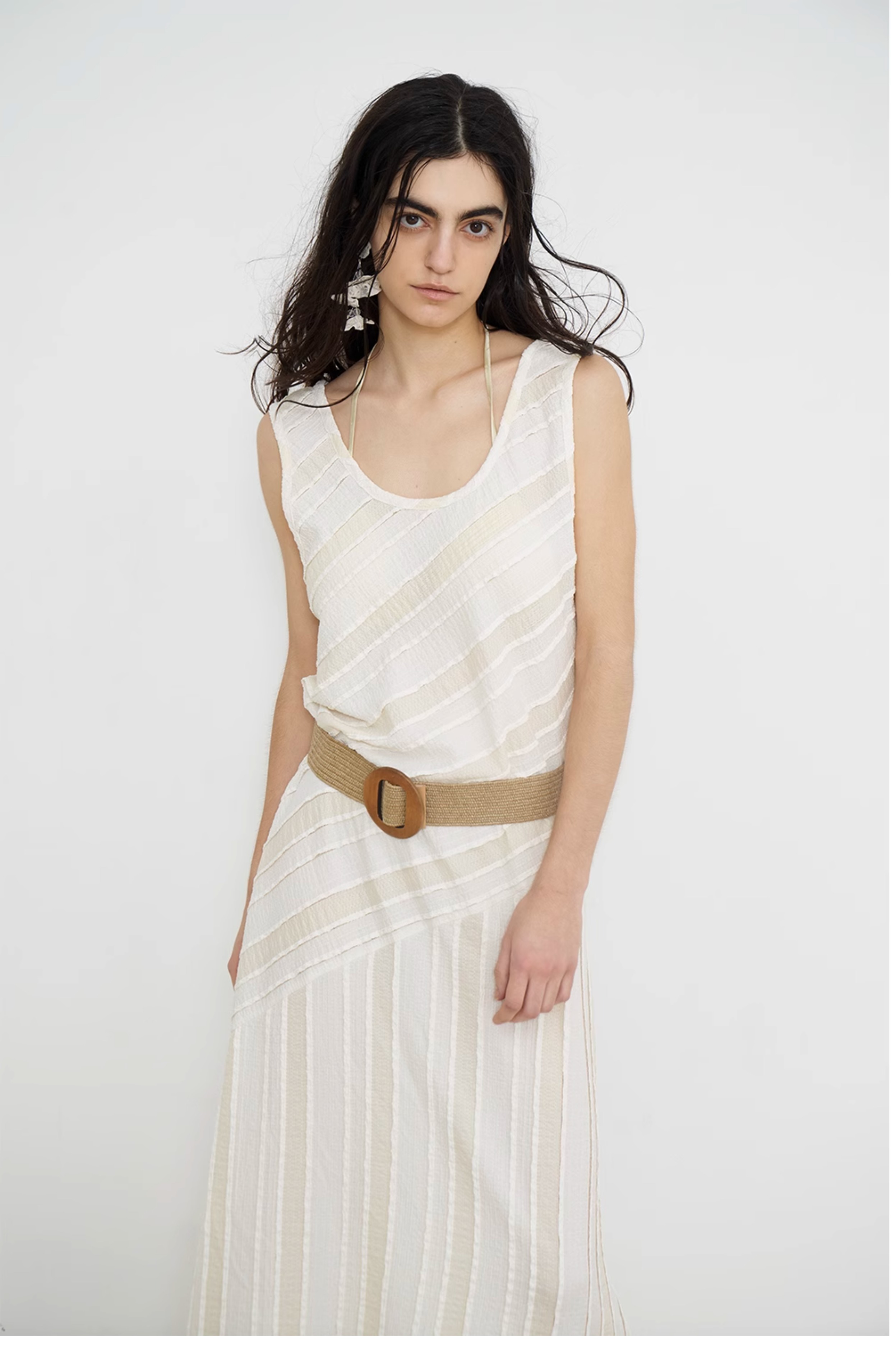 TiaTia23/夏上新慵懶松弛感斜裁肌理彈力U形領寬松休閑背心連衣裙