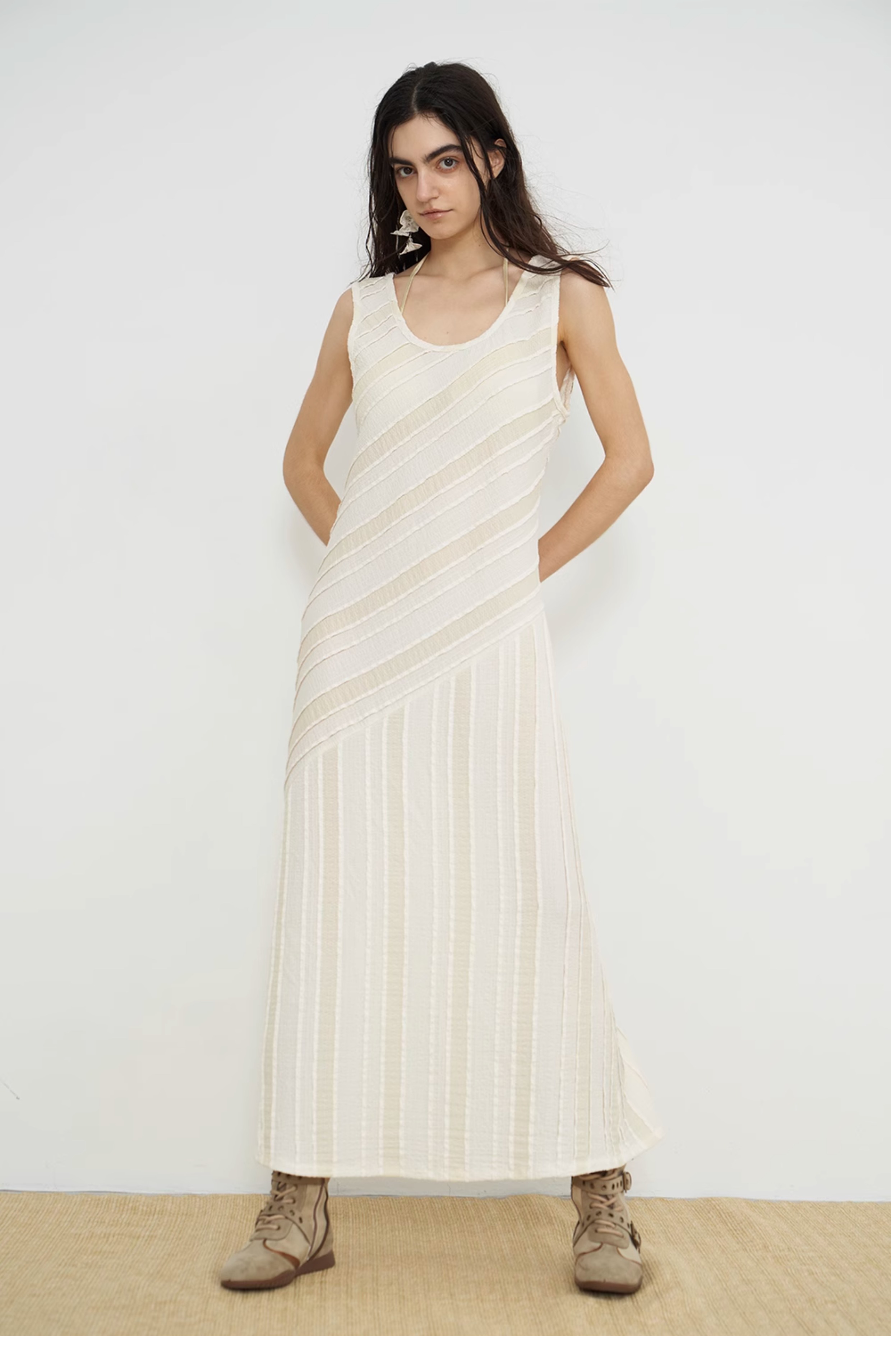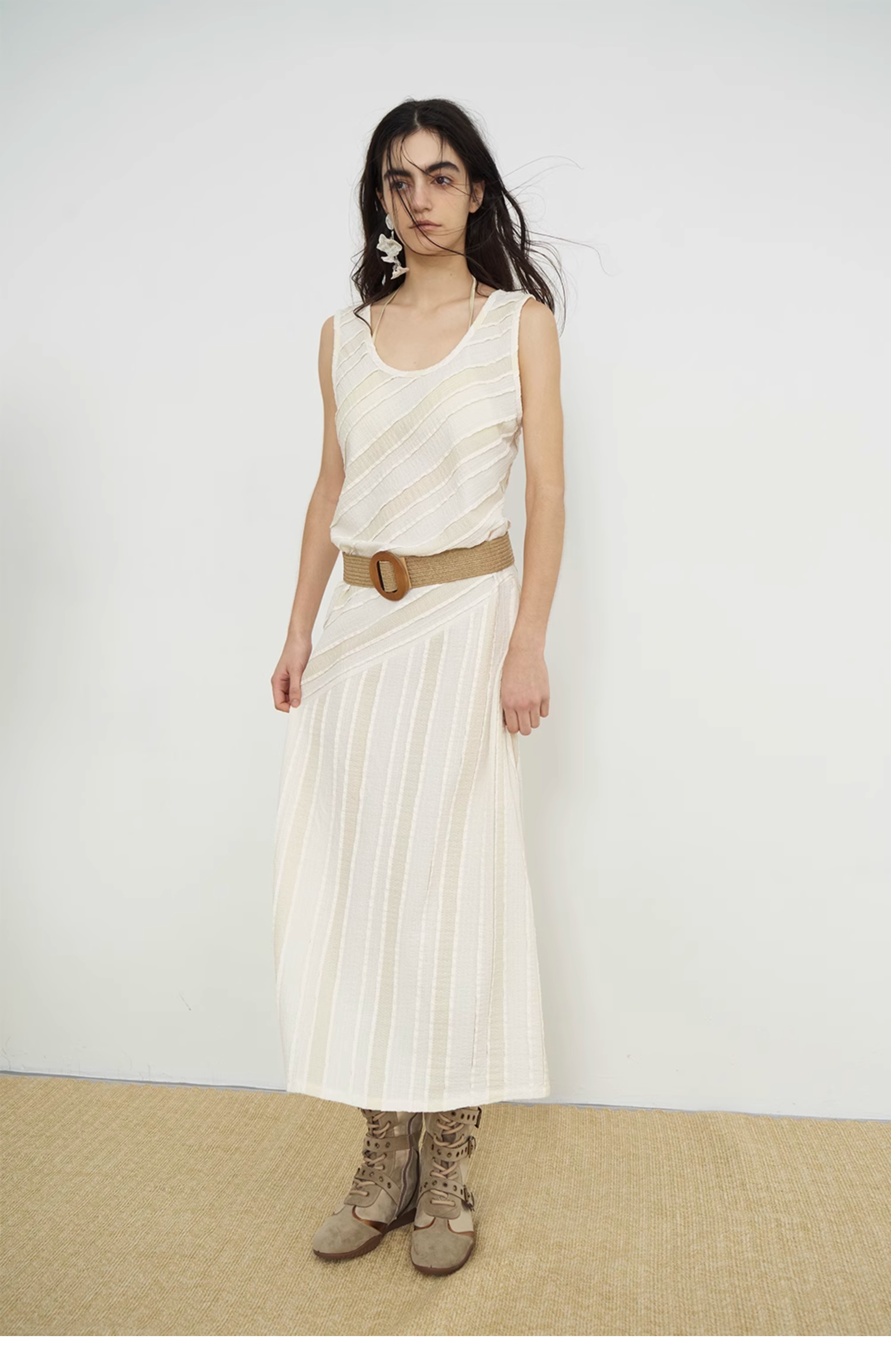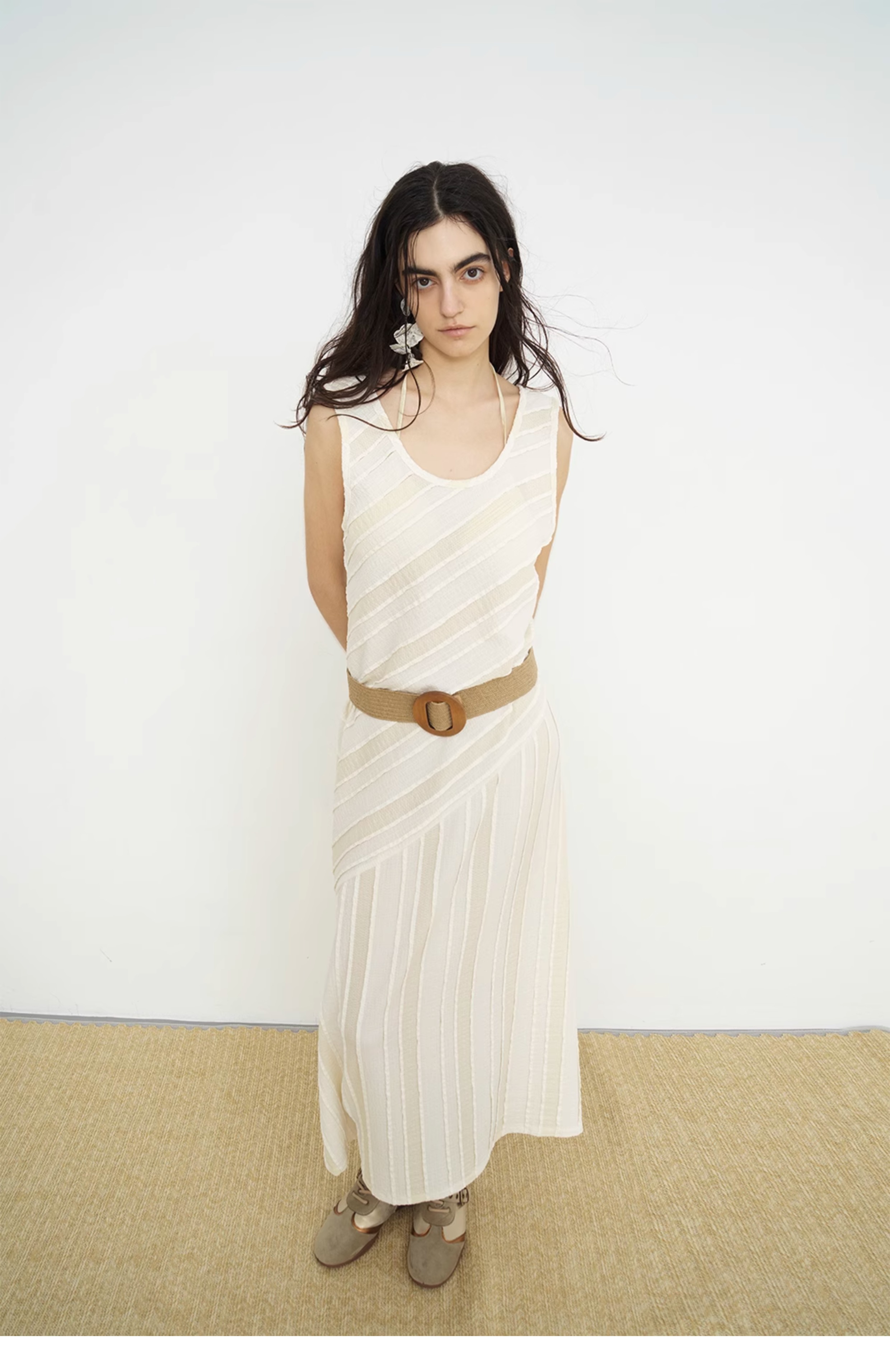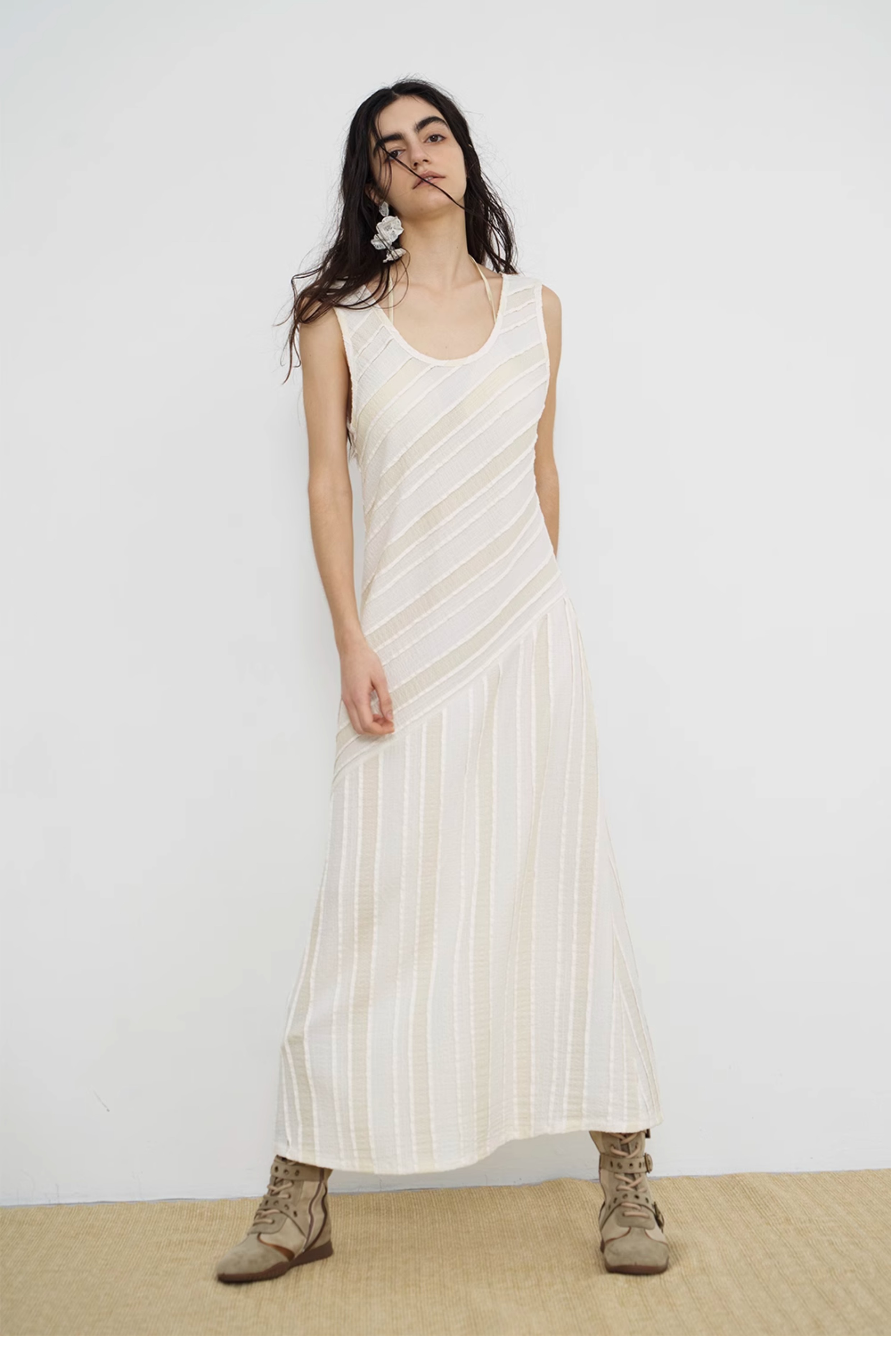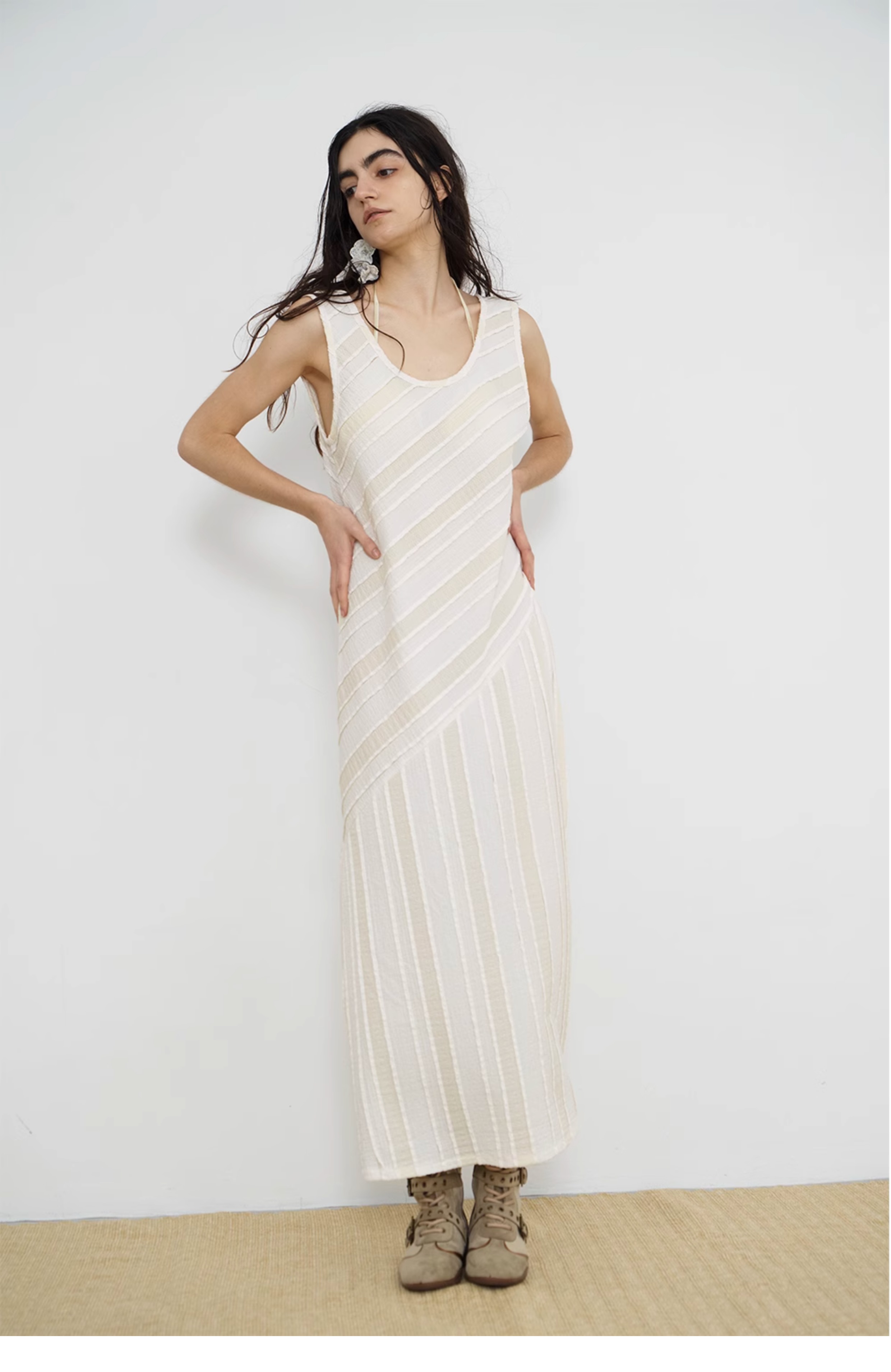 TiaTia23/夏上新慵懶松弛感斜裁肌理彈力U形領寬松休閑背心連衣裙