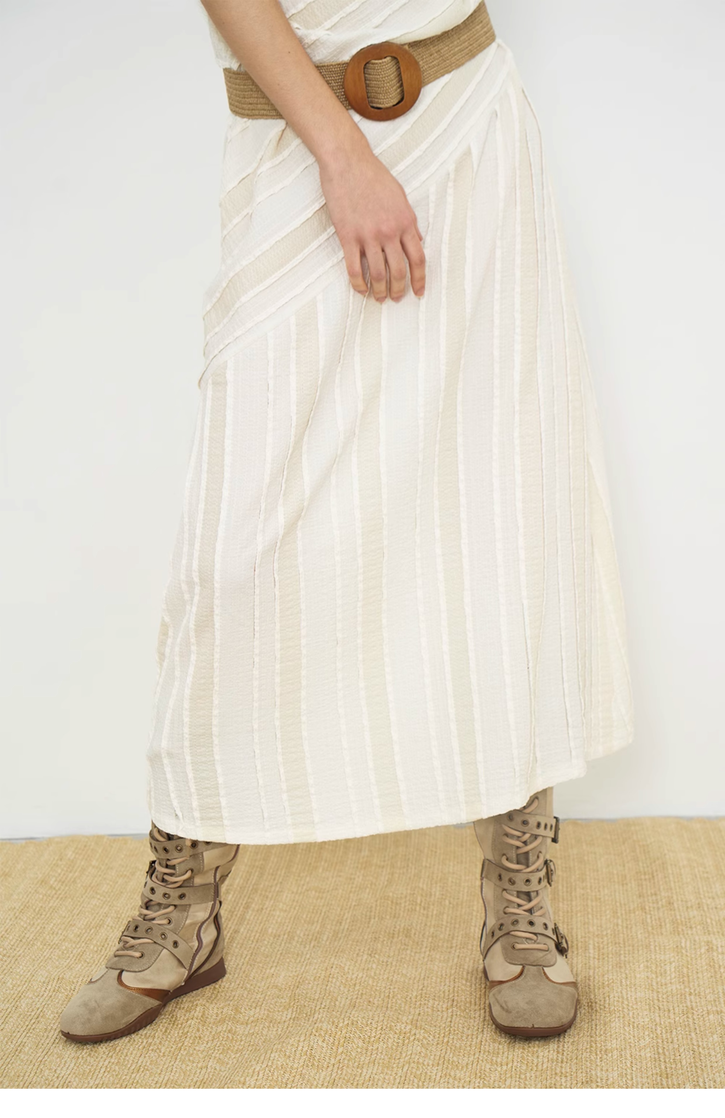 AnnoMundi創世紀元 氧氣甜心 原創設計感木耳邊裙擺X型收腰連衣裙