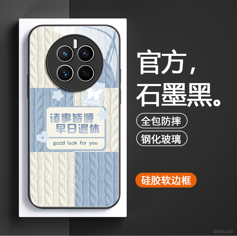 適用華為mate50手機殼新款mate40pro全包防摔mate30玻璃mate20保護套mt50pro情侶Mt40e女款por文字諸事皆順