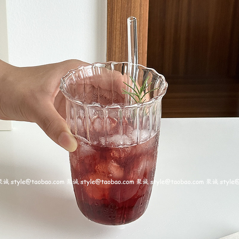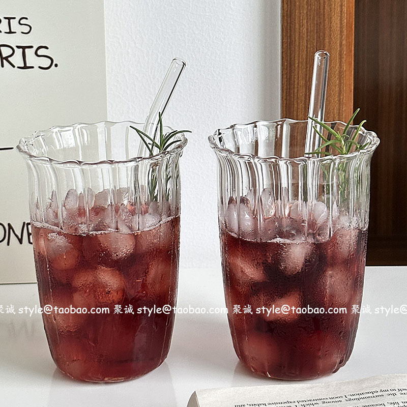 Oranges咖啡店耐高溫波浪口玻璃杯水杯冷萃杯冰拿鐵咖啡杯飲品杯