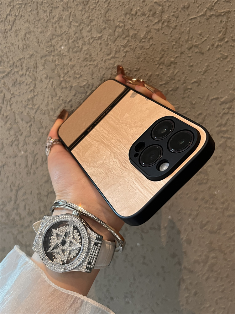 棕色月坑紋皮質腕帶蘋果15手機殼蘋果14新款iphone15promax高級感蘋果13套12防摔ProMax全包鏡頭Pro女PM適用