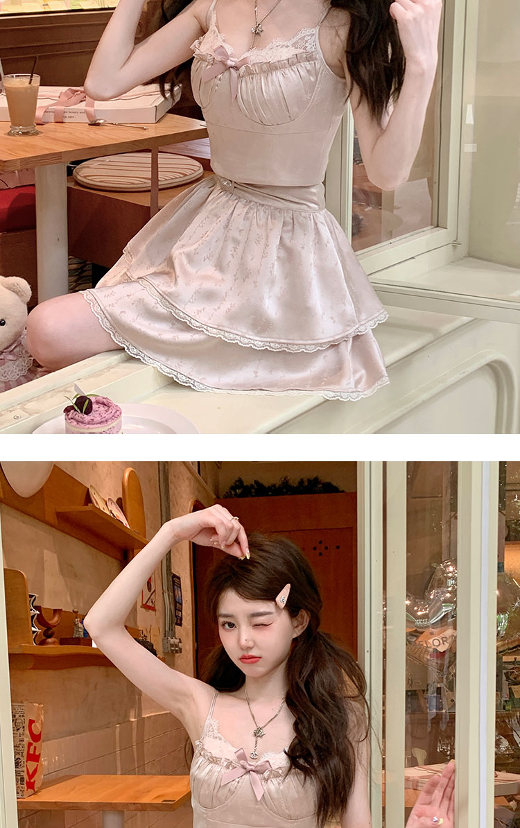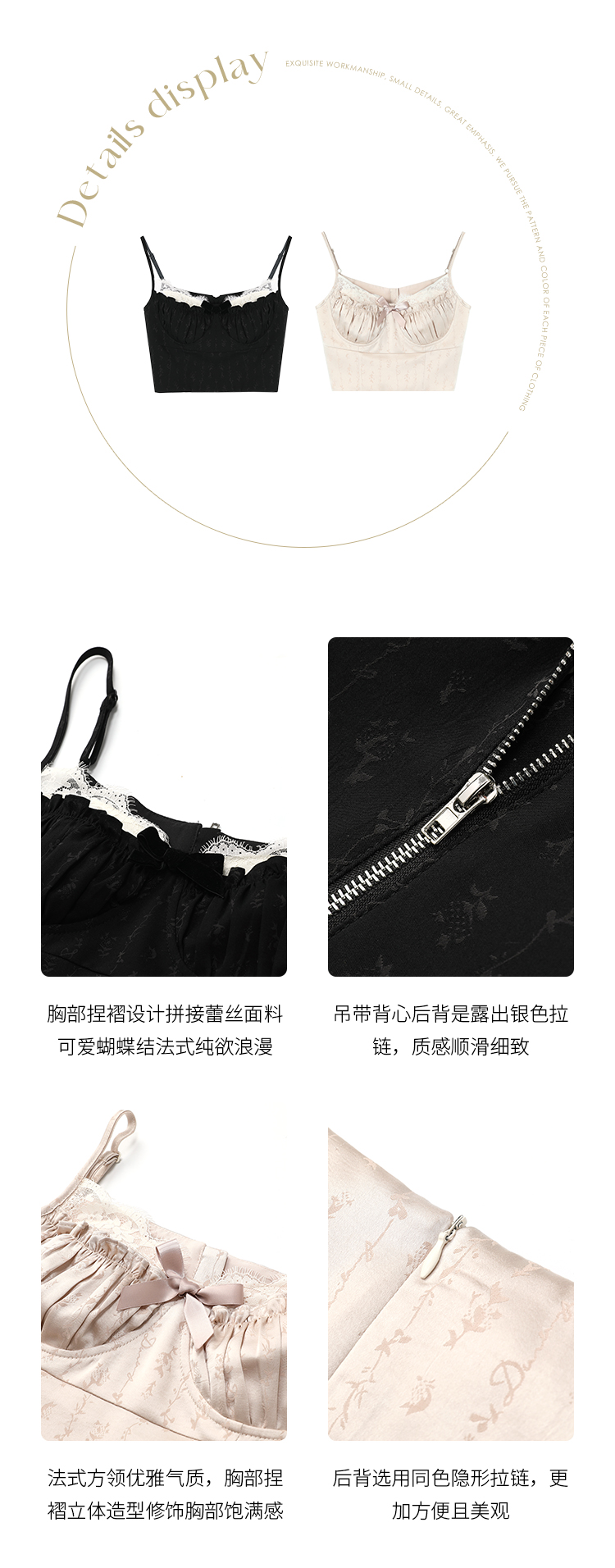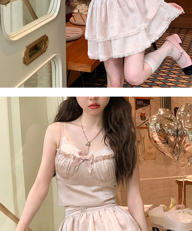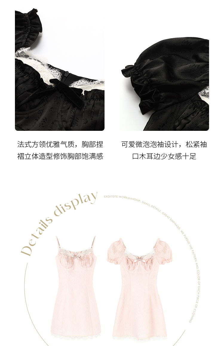 Acaine阿彩呢【南法香頌】絕美奶fufu法式提花緞面吊帶連衣裙上衣