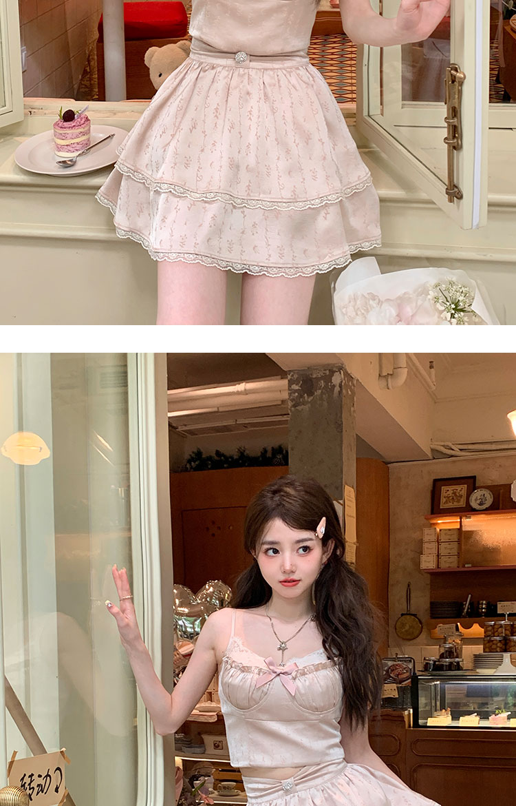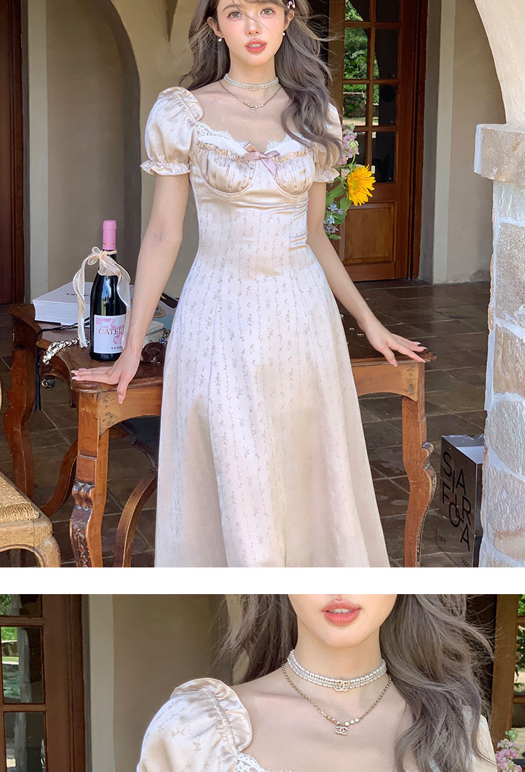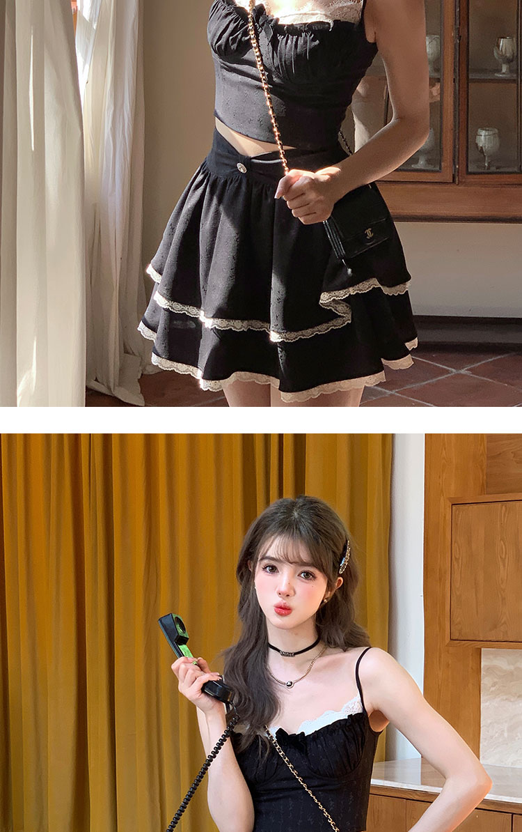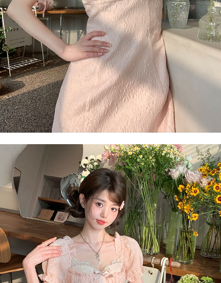 Acaine阿彩呢【南法香頌】絕美奶fufu法式提花緞面吊帶連衣裙上衣