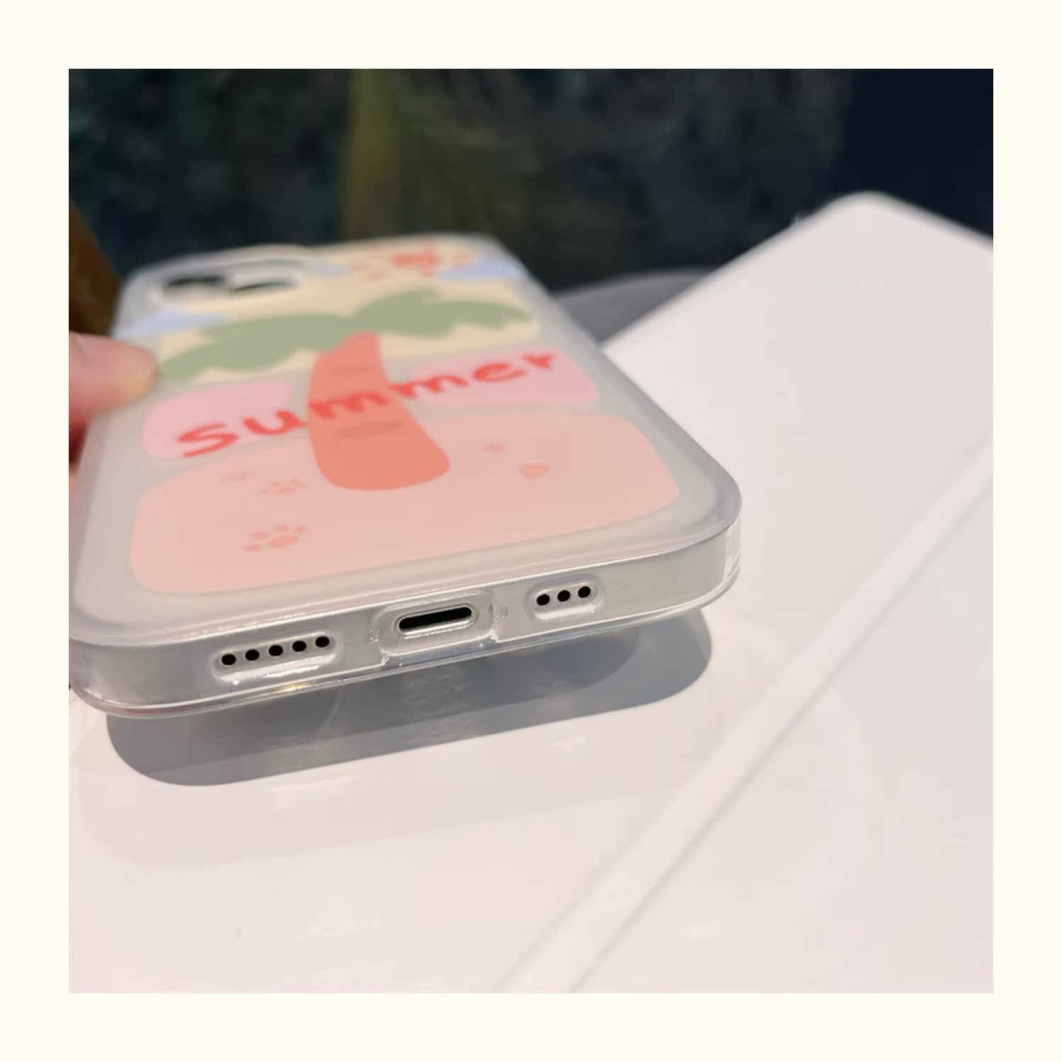 沙灘椰子樹適用于蘋果13Pro手機殼新款韓風ins簡約小清新透明磨砂夏天字母女款卡通可愛iPhone14promax保護套