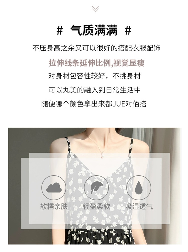 三醋酸緞面吊帶連衣裙女法式真絲a字質感高級感印花高腰夏季內搭