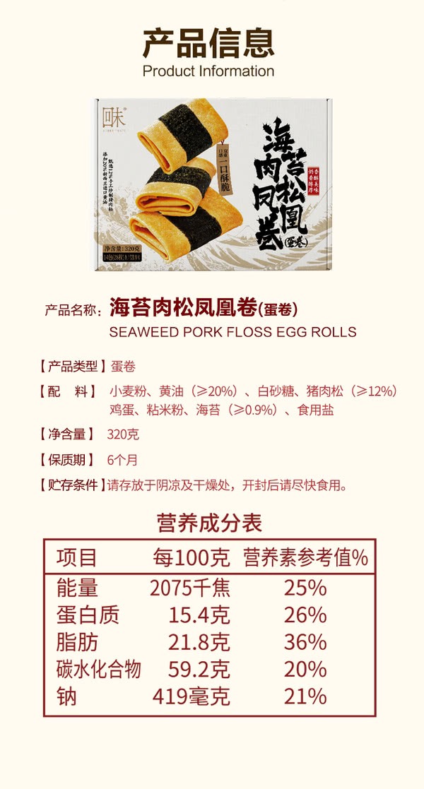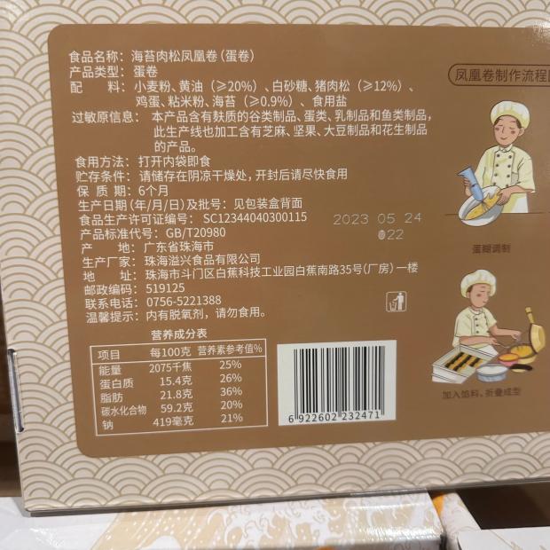 豆豆MM山姆代購零食早餐回未海苔肉松鳳凰蛋卷14包(28枚)320g