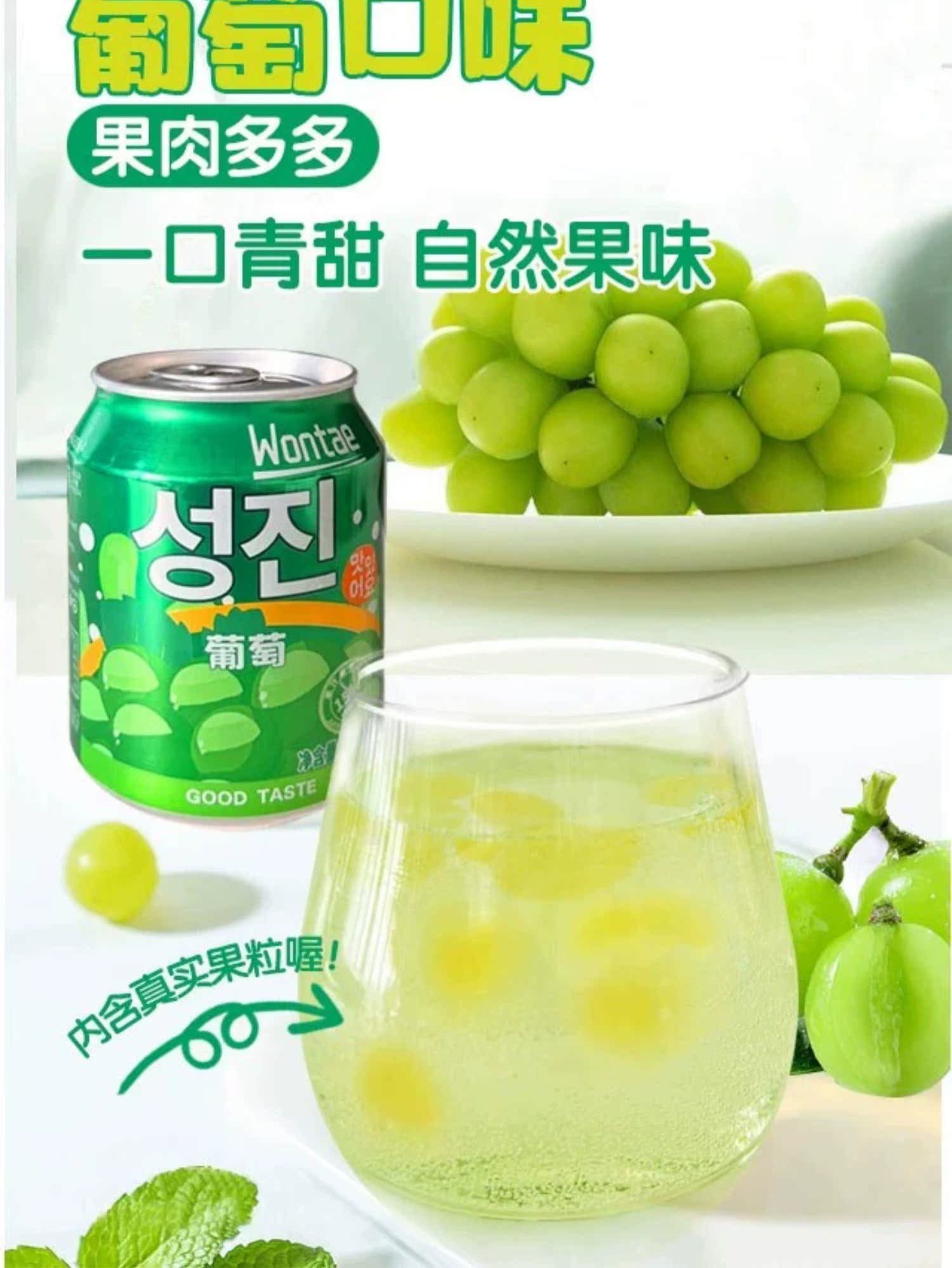 源泰韓國風味網紅飲品葡萄原汁果肉果汁果粒多238ml*10罐飲料整箱