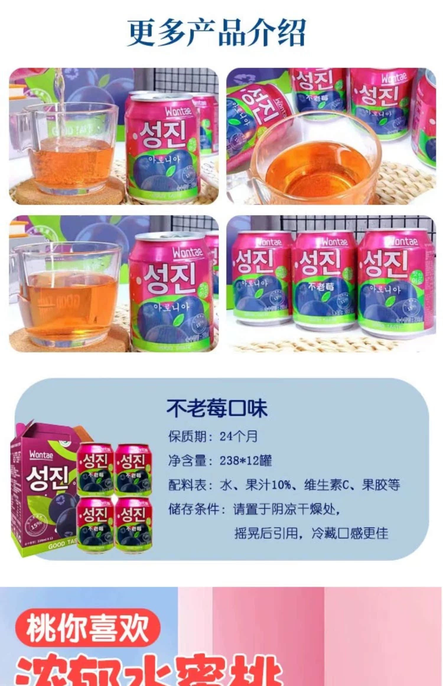 源泰韓國果肉果汁飲料飲品238ml*12罐葡萄草莓蜜桃果粒組合整箱裝