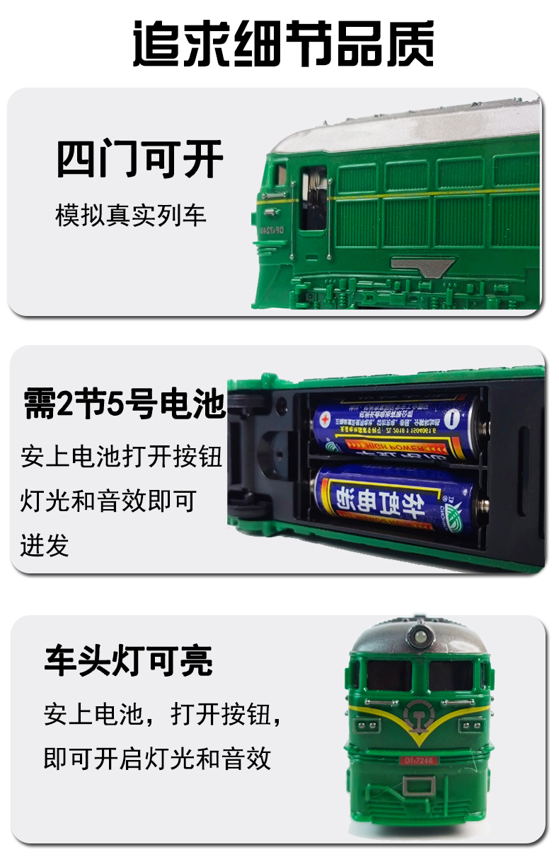 兒童慣性綠皮東風4B內燃機火車玩具男孩聲光可開門小火車列車模型