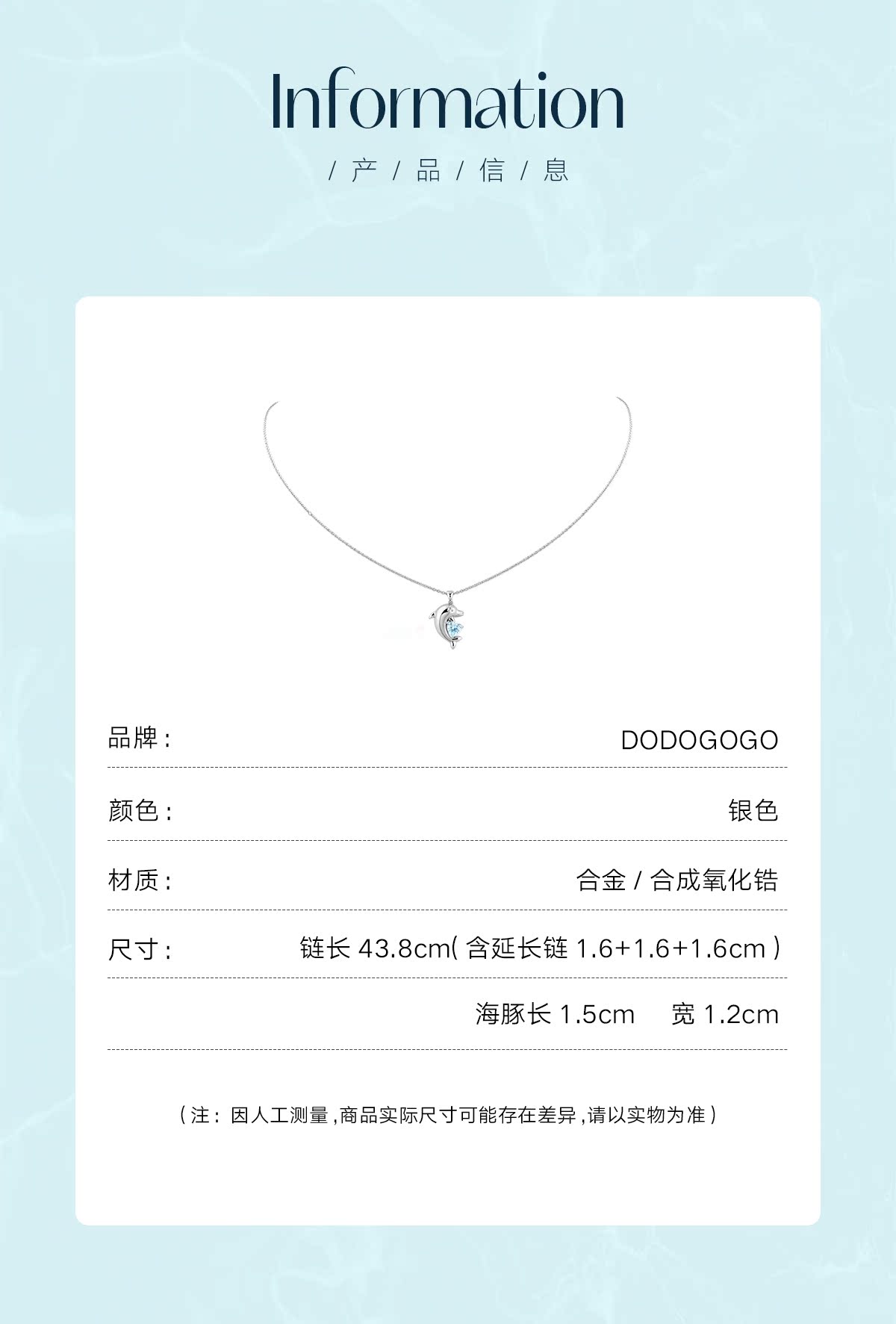 DODOGOGO藍色海豚愛心項鏈女高級設計感小眾鎖骨鏈2023新款頸鏈