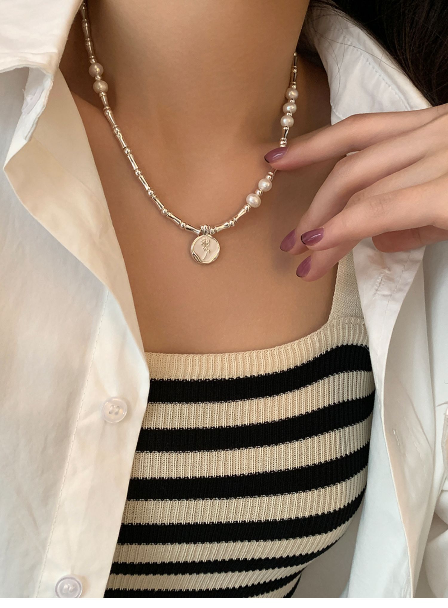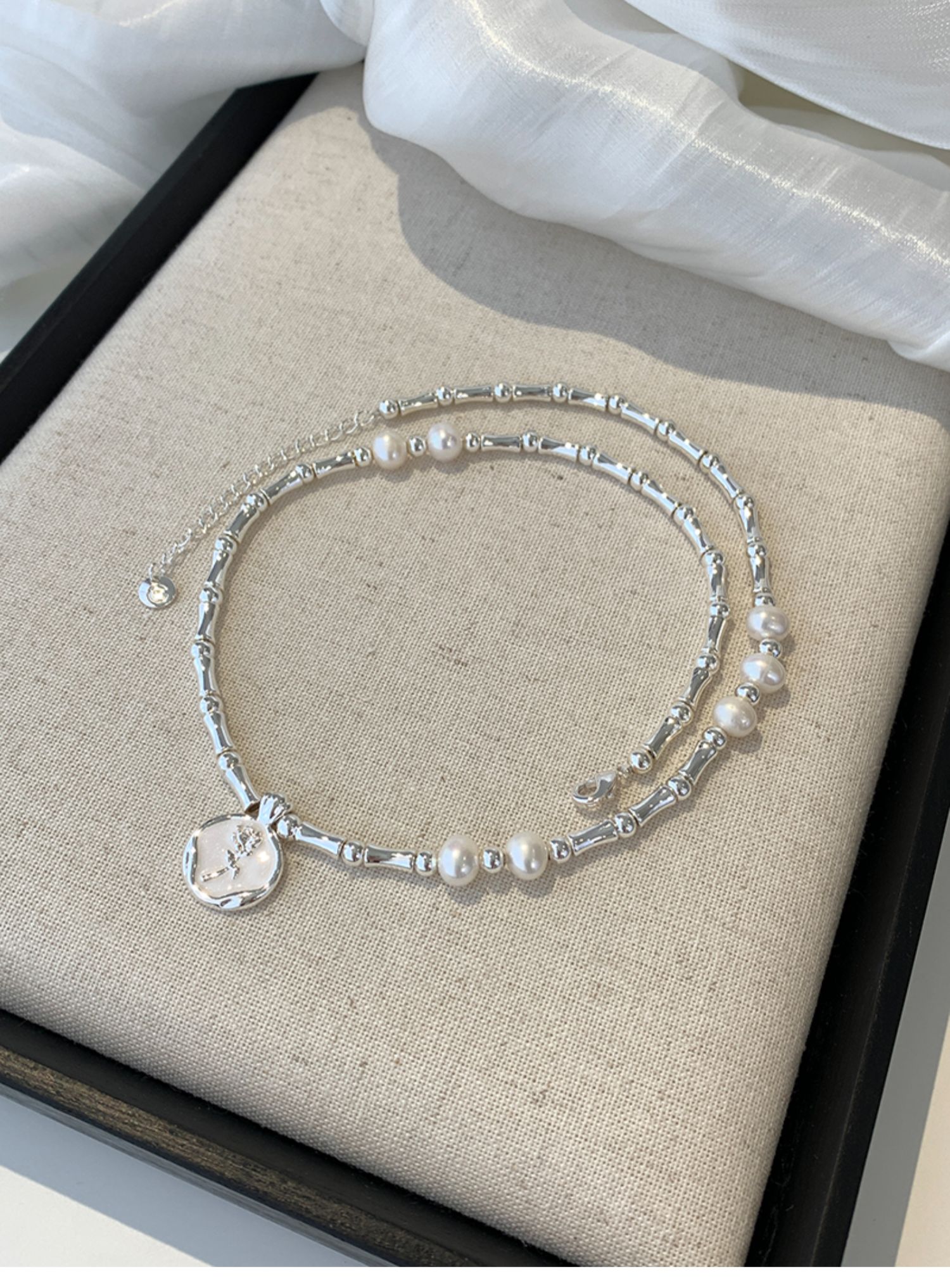 迷度通體925純銀正圓施家人造珍珠鎖骨鏈 超閃碎銀子項鏈溫柔輕奢