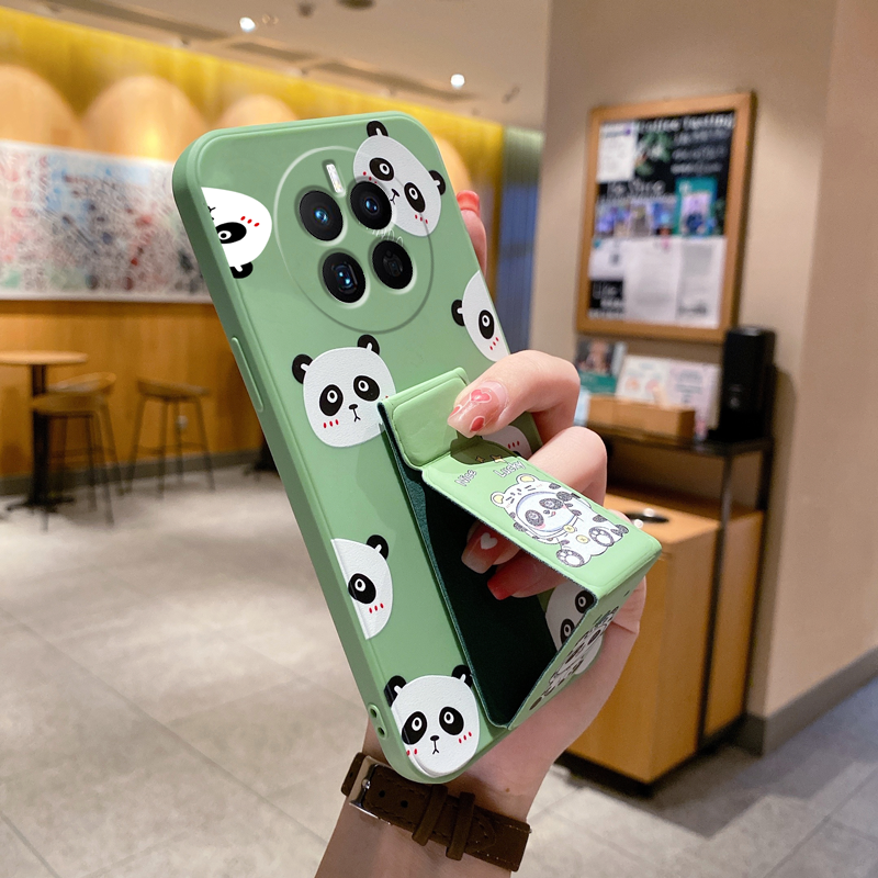 適用華為Mate50手機殼可愛小熊貓Mate50E車載磁吸支架Mate40EPro/3Mate0EPro/Mate20Pro/10折疊腕帶硅膠軟殼