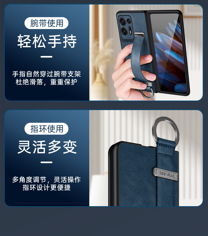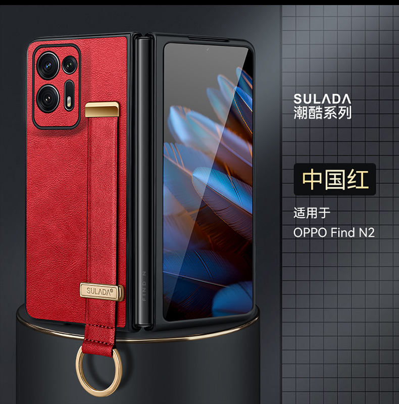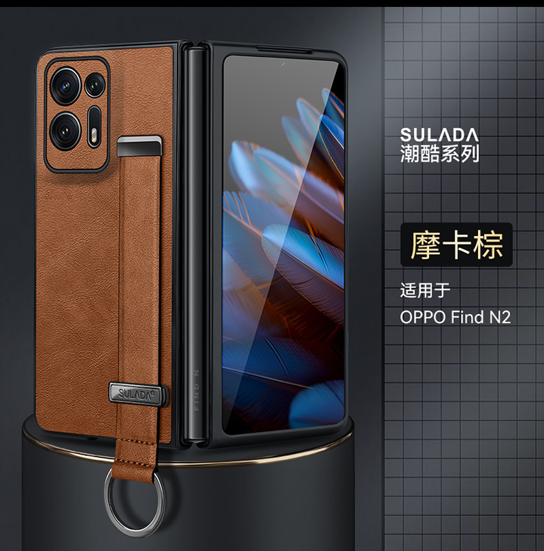 新款腕帶指環素皮適用oppofindn2手機殼findn2小折疊屏新款oppo find n2全包皮紋保護套超薄一體支架外殼男女