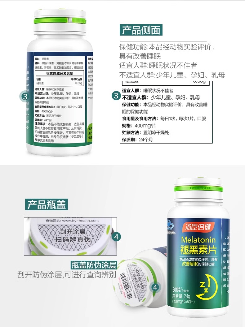 褪黑素安瓶助眠湯臣倍健官方正品退黑色素安睡眠片非美國進口軟糖