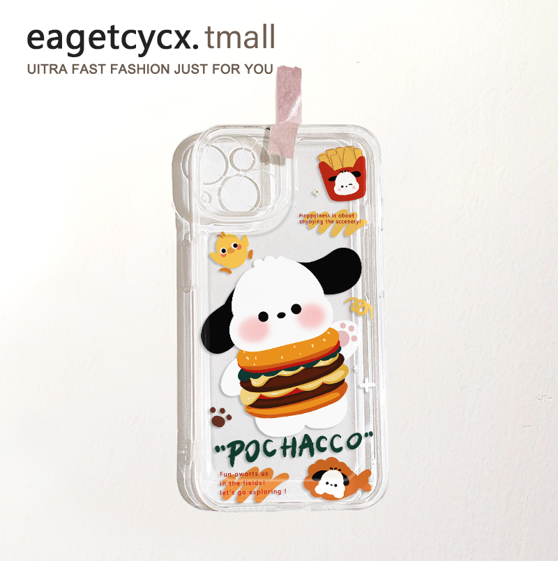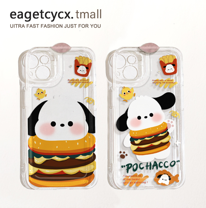 卡通漢堡帕恰狗適用蘋果14promax手機殼iPhone13透明12mini新款11pro網紅創意1plus5可愛xs女xr全包x防摔硬殼