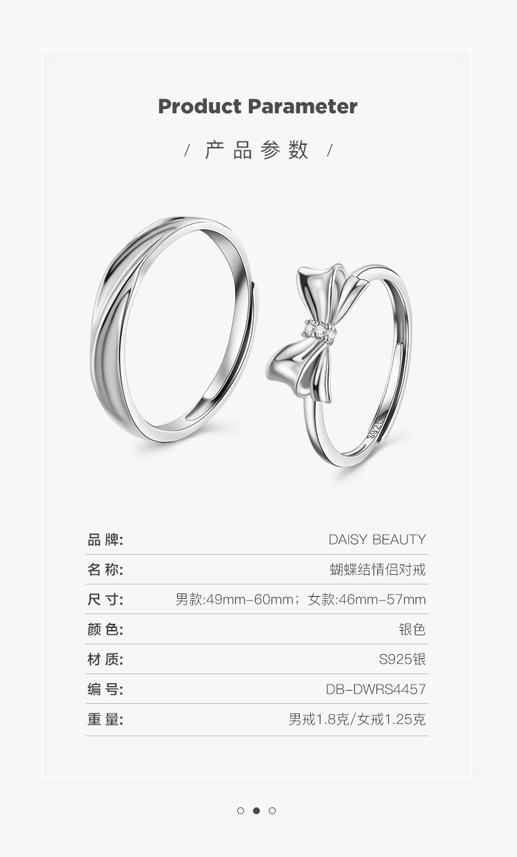 DAISY BEAUTY戒指純銀情侶蝴蝶結男女對戒日韓簡約小眾設計飾品