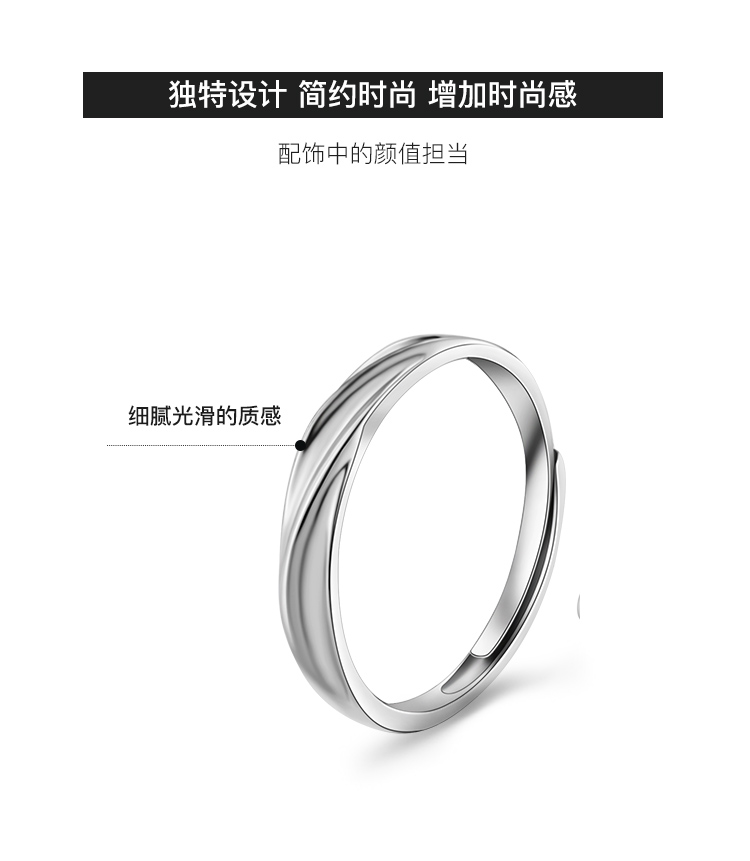 情侶戒指999純銀一對可調節2023新款輕奢小眾925銀對戒閉口高級感