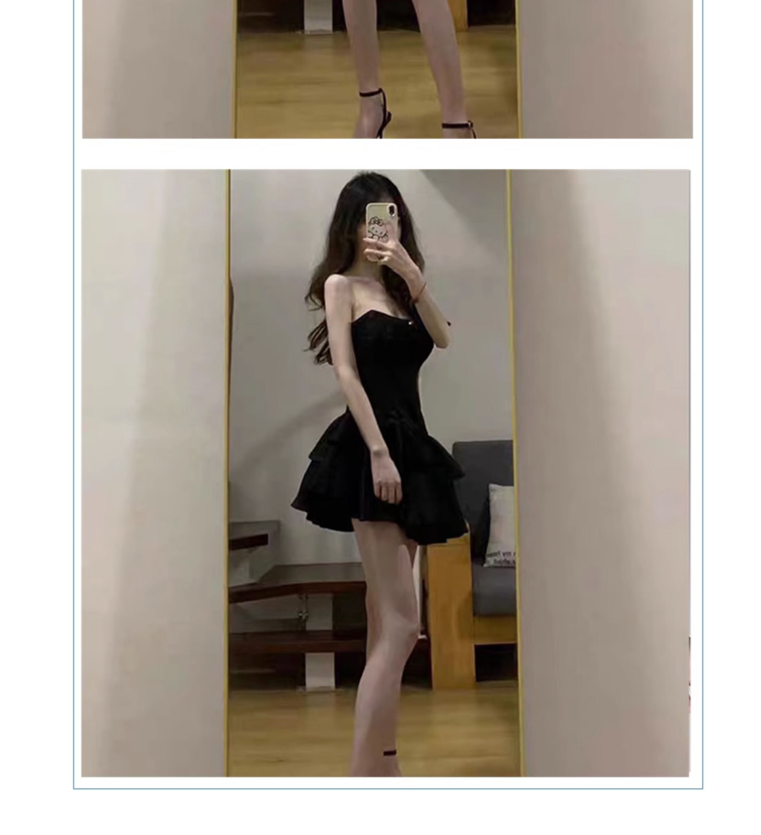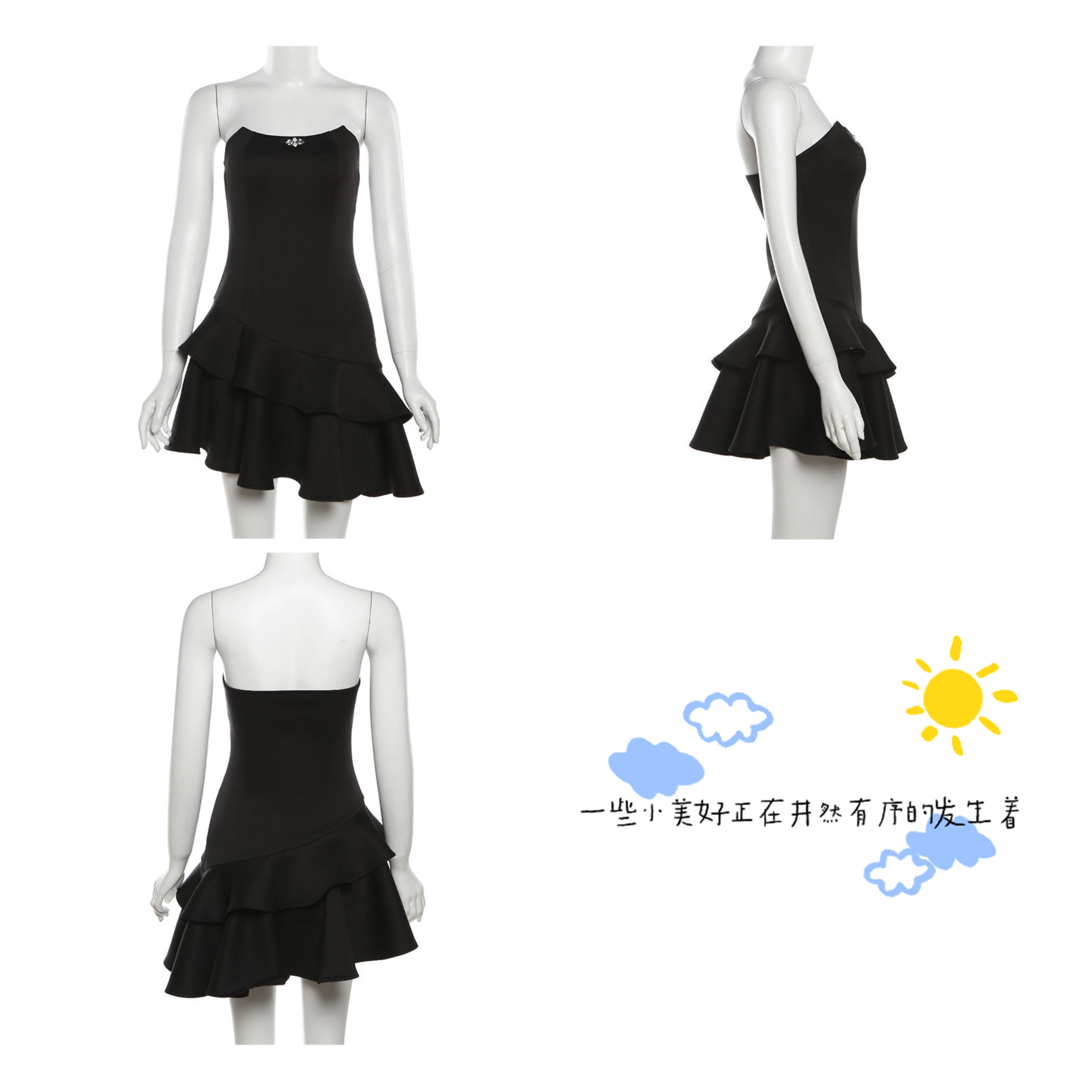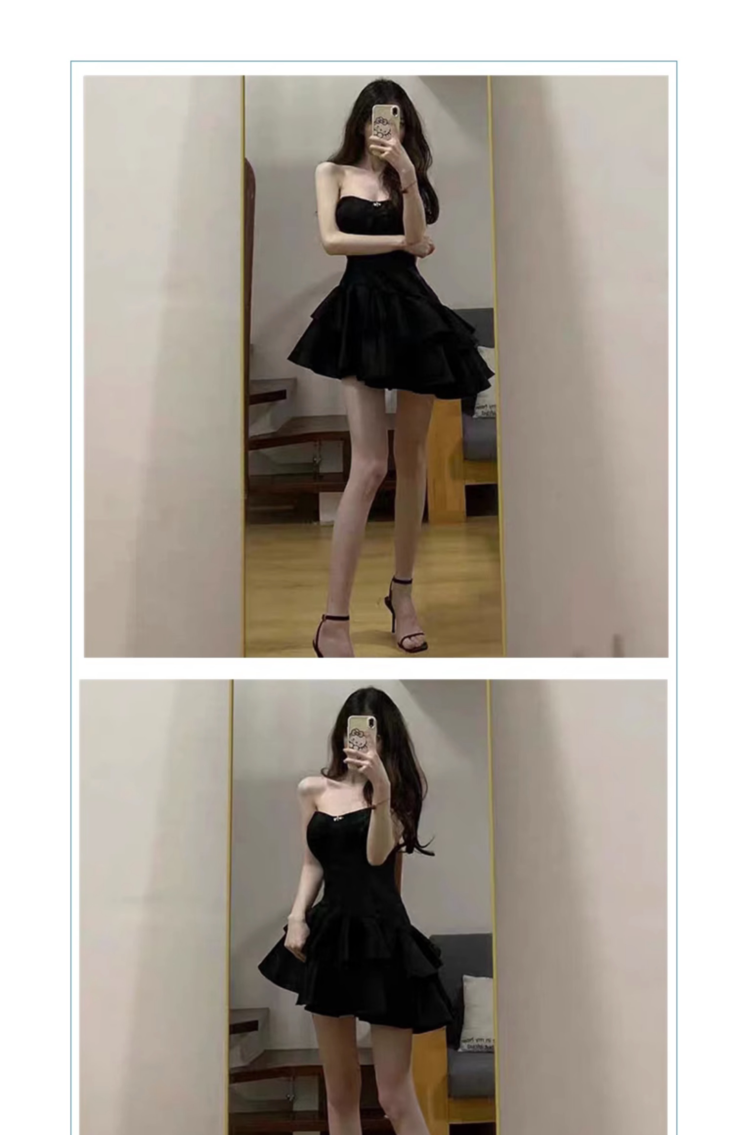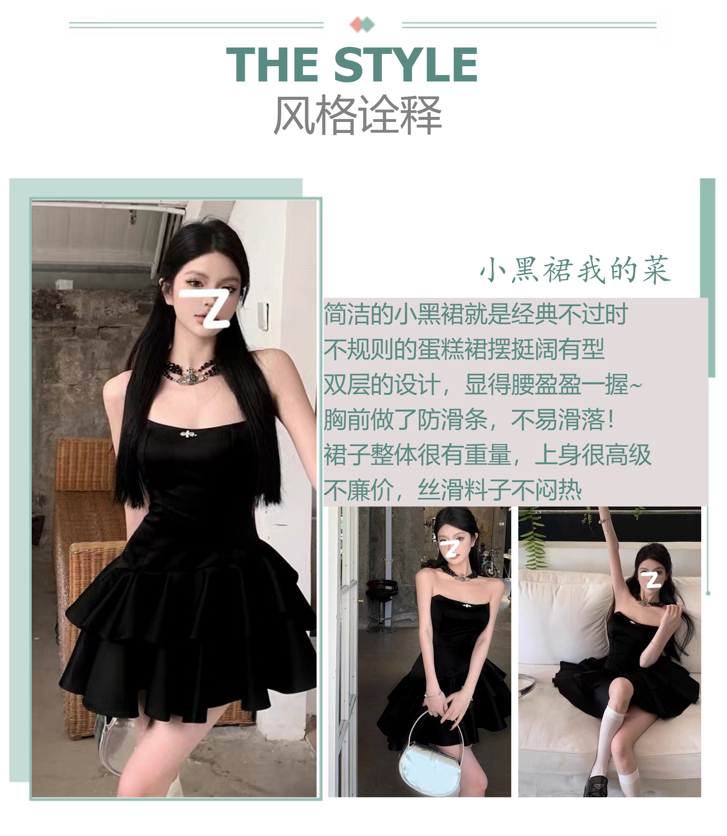 SPICY 氣質黑色連衣裙女高級感抹胸生日小禮服不規則蛋糕裙蓬蓬裙