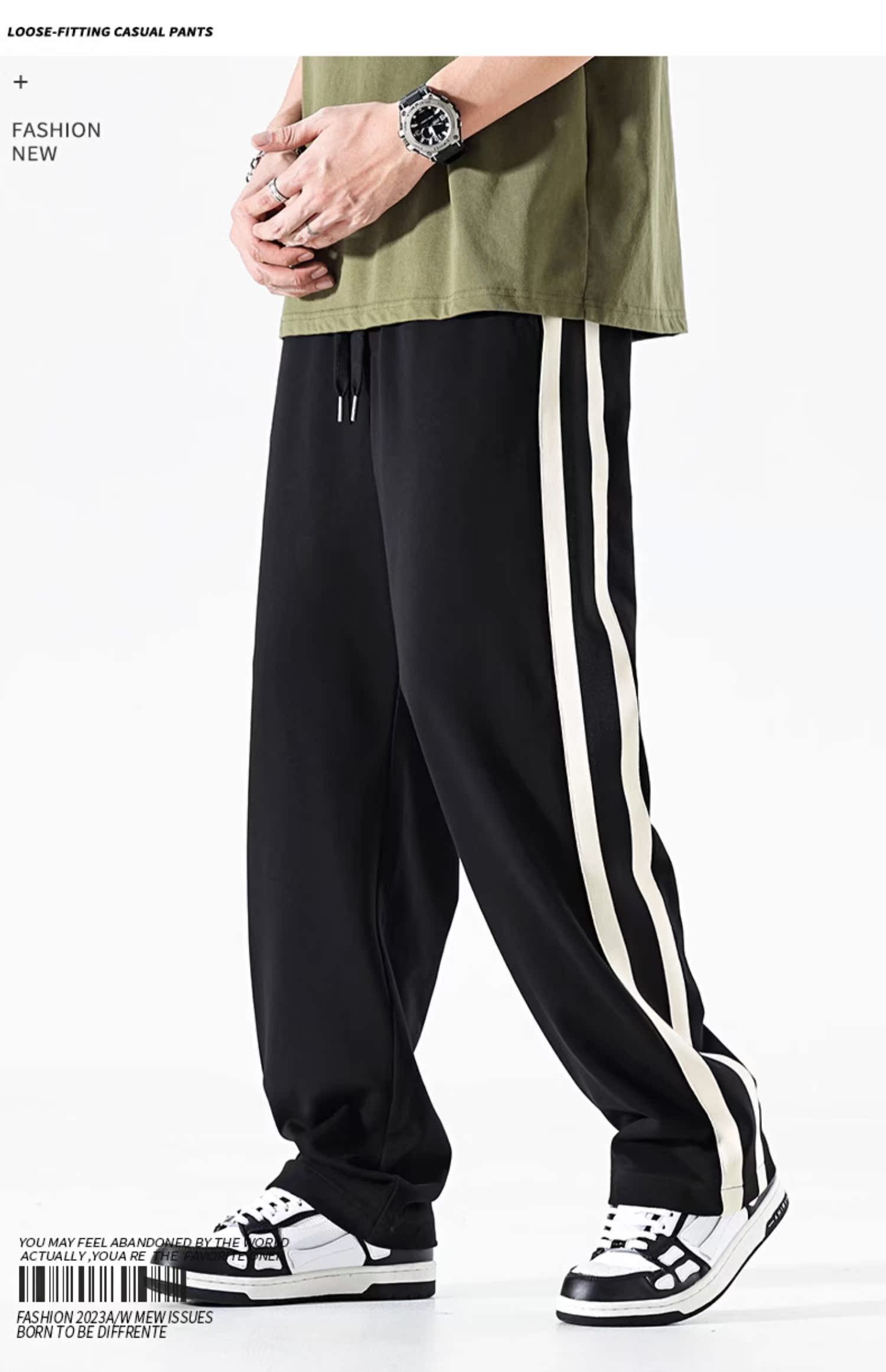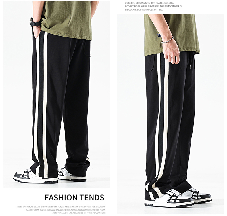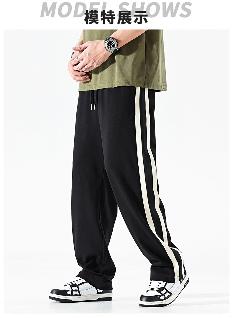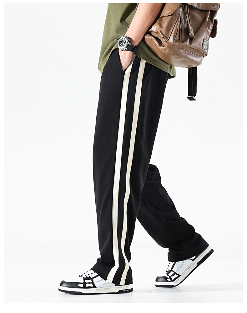 潮流百搭休閑褲男士寬松直筒條紋運動褲子男美式ins潮牌春秋新款