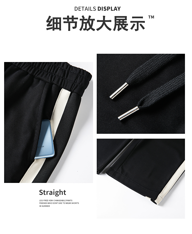 春秋新款直筒休閑側邊條紋衛褲男士美式潮牌ins高街運動百搭褲子