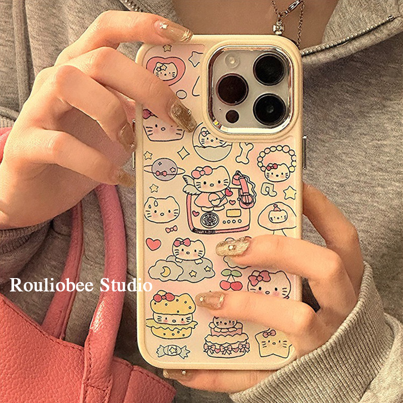 高級感藝術卡通可愛蛋糕KT貓適用iPhonexs14ProMax手機殼14pro軟殼硅膠13防摔少女心12/11直邊xsmax小眾創意