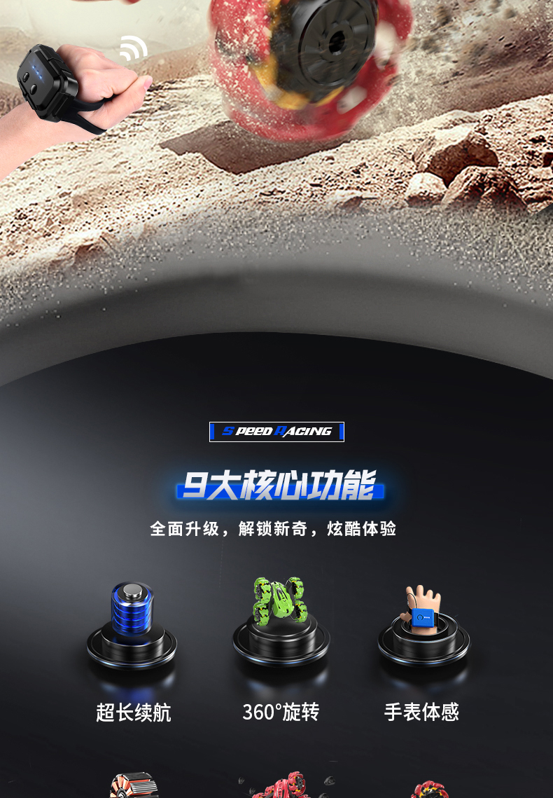 雙面翻轉特技車越野充電遙控玩具男生小男孩汽車禮物重力感應手表