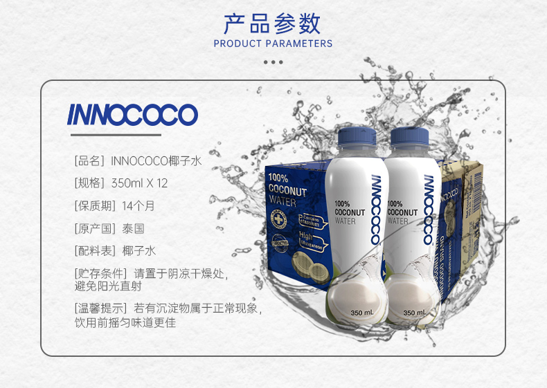 泰國進口INNOCOCO椰子水100%純椰汁天然青椰0脂孕婦飲料350ml整箱