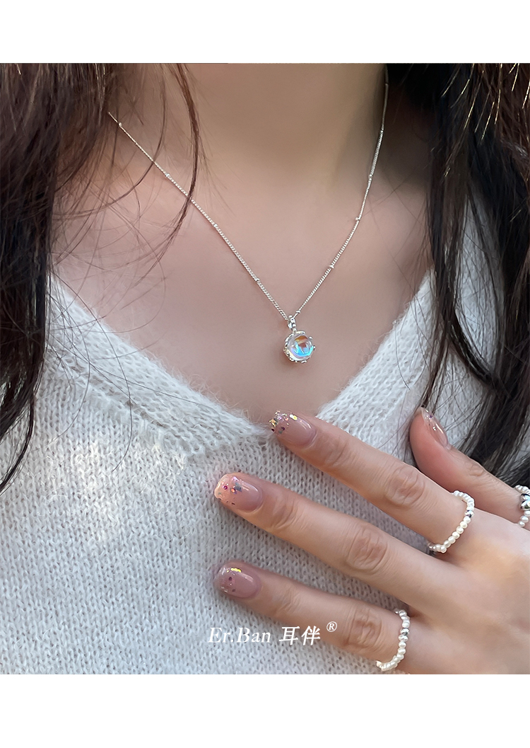 璀璨星球~浪漫宇宙純銀項鏈輕奢小眾女生高級感月光石頸鏈鎖骨鏈