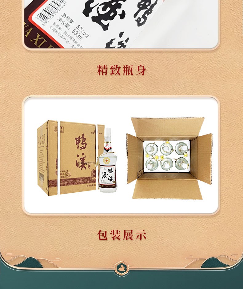 鴨溪窖酒珍釀52度濃香型白酒500ml*6瓶整箱純糧食酒口糧酒玻瓶