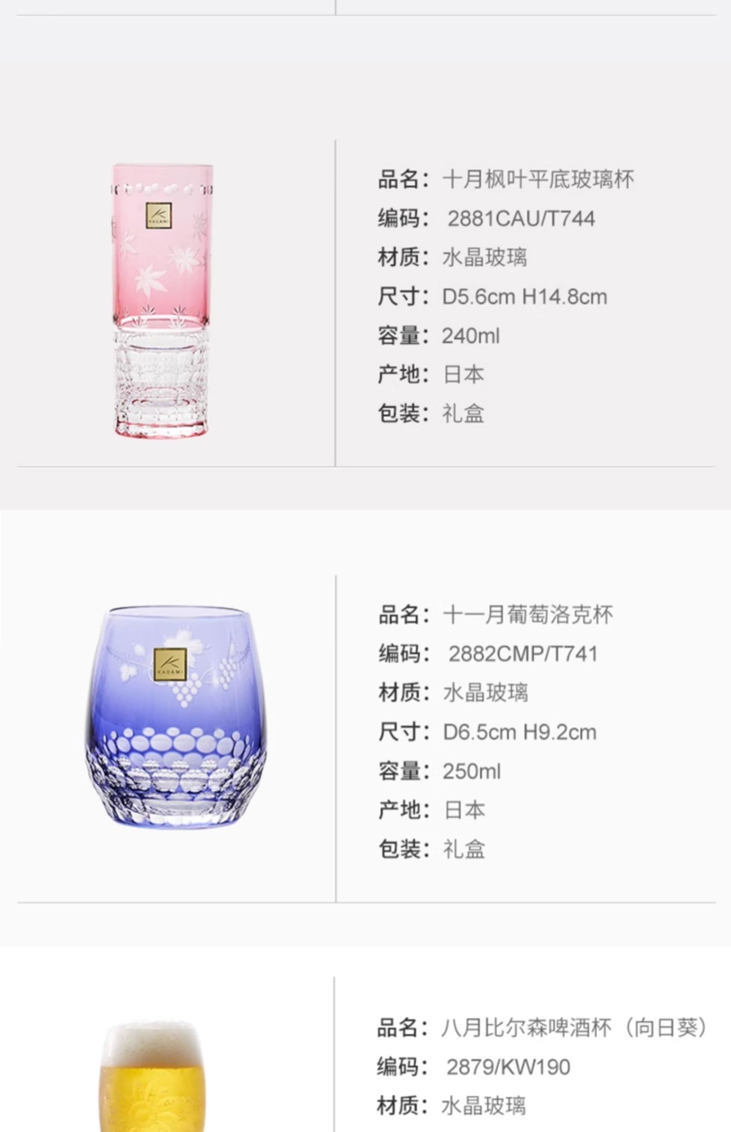 日本KAGAMI大倉陶園聯名款節日習俗四季洛克杯江戶切子洋酒杯套裝