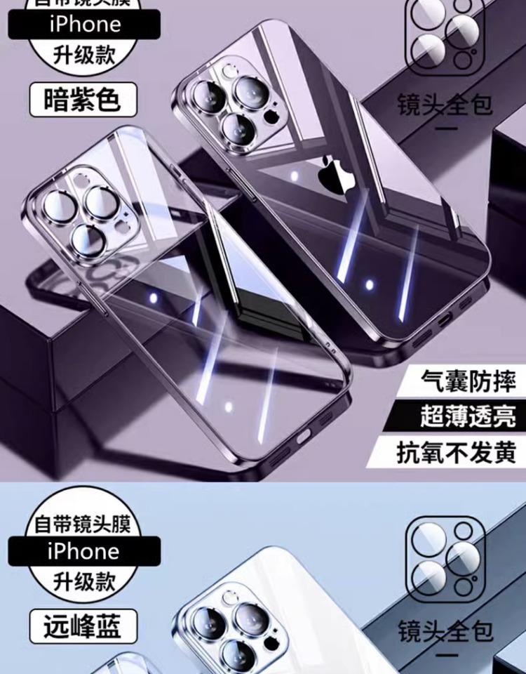 適用蘋果13手機殼新款iphone14高級感12自帶鏡頭膜15pro男士13promax透明簡約plus保護套女一體防塵電鍍硬殼
