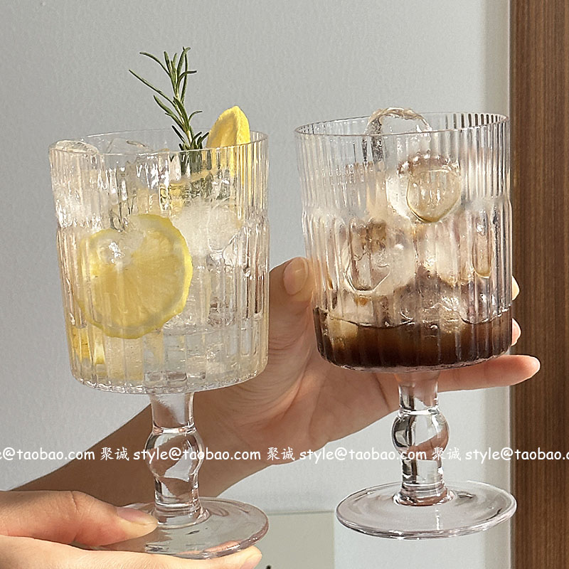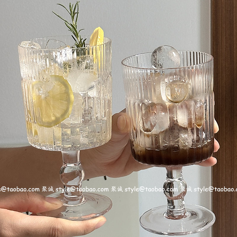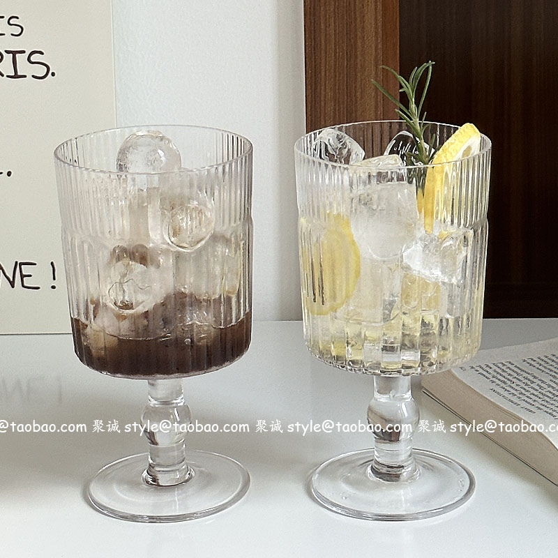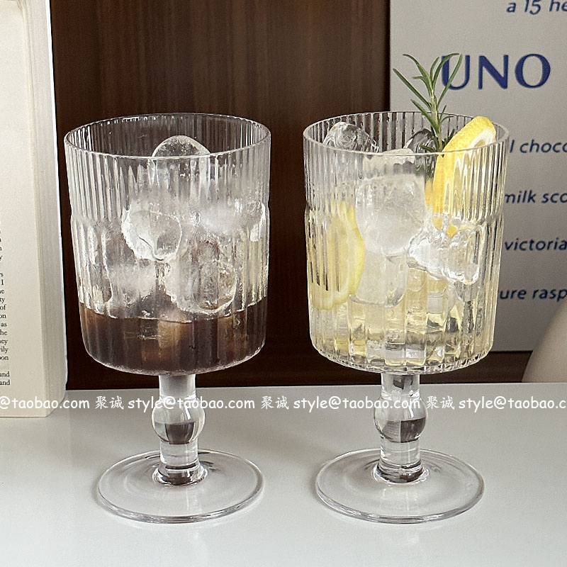 小眾ins復古冰美式拿鐵咖啡杯 豎紋高腳杯果汁杯氣泡水杯雞尾酒杯
