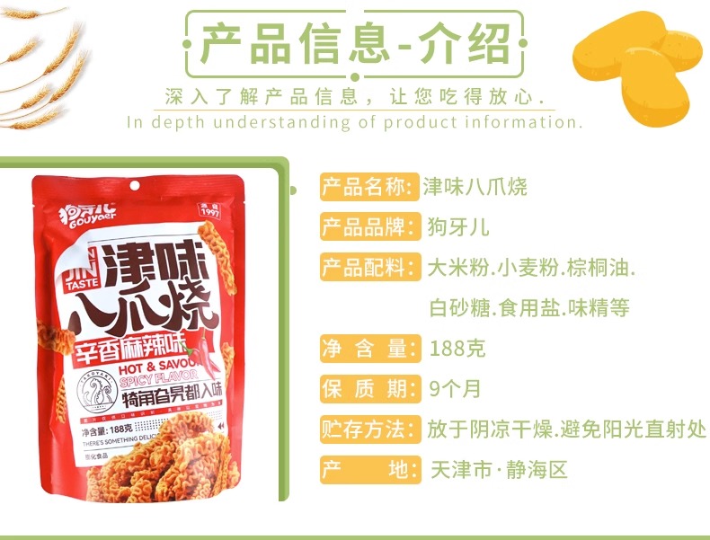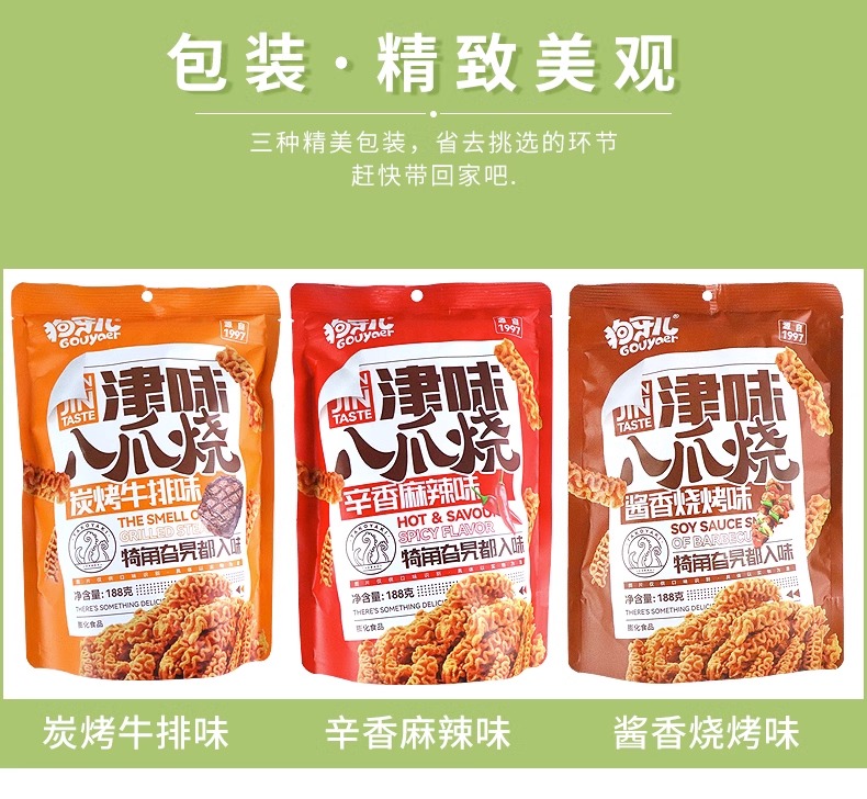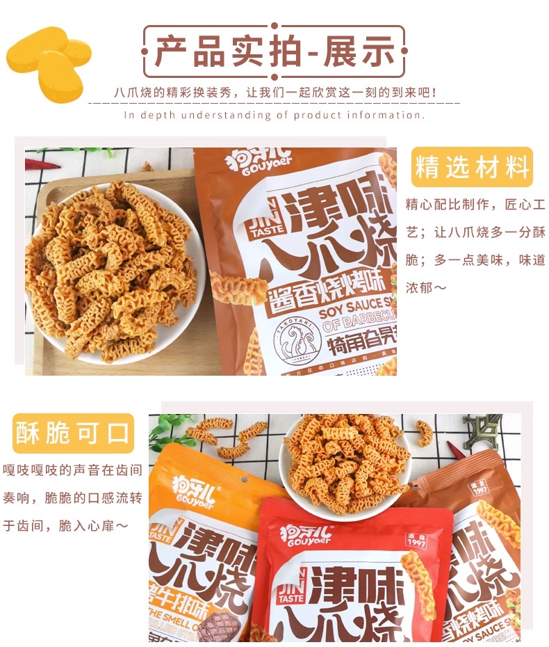 狗牙兒八爪燒6袋膨化鍋巴吃貨80/90后懷舊解饞零食小吃休閑食品