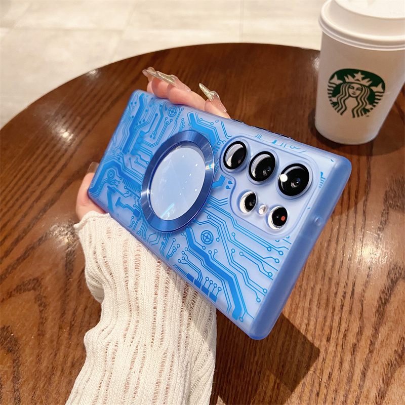 三星s23ultra手機殼磁吸無線充適用s22+plus防刮鏡頭膜全包防摔保護套Galaxy s23透明磨砂個性彩繪s22u潮殼