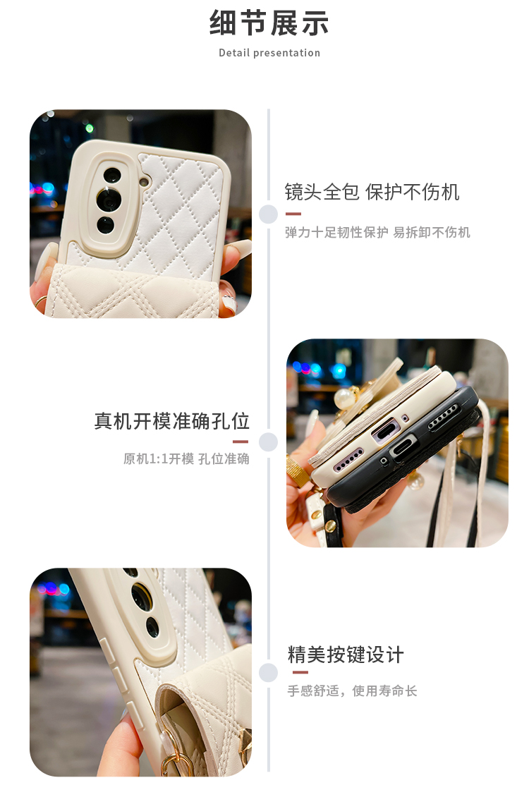小香風米奇卡包適用華為nova11手機殼nova10Pro菱格皮質nove9小眾高級感8斜跨背帶式7se全包新款6外殼防摔5女