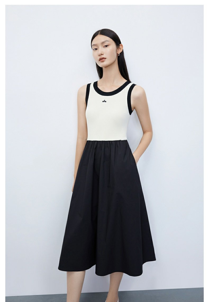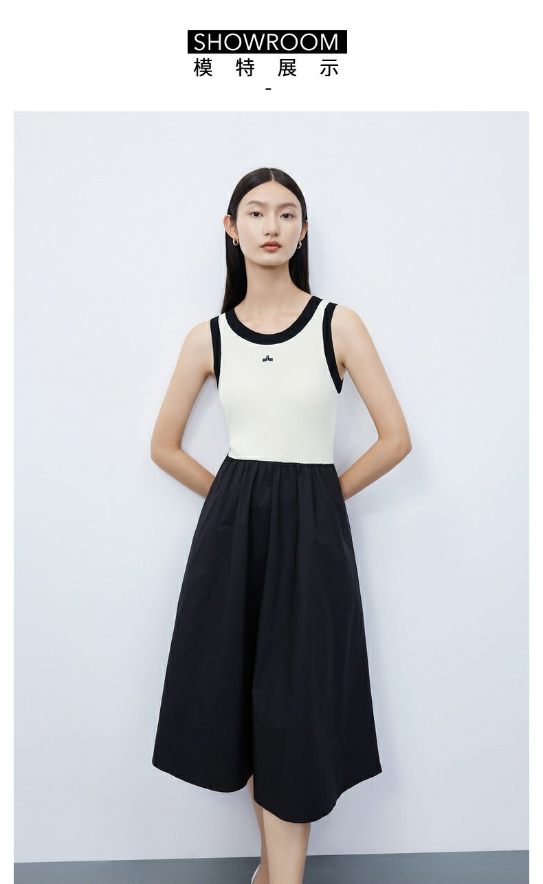 LILY經典X型高腰顯瘦針織背心連衣裙女23秋裝新款撞色拼接背心裙