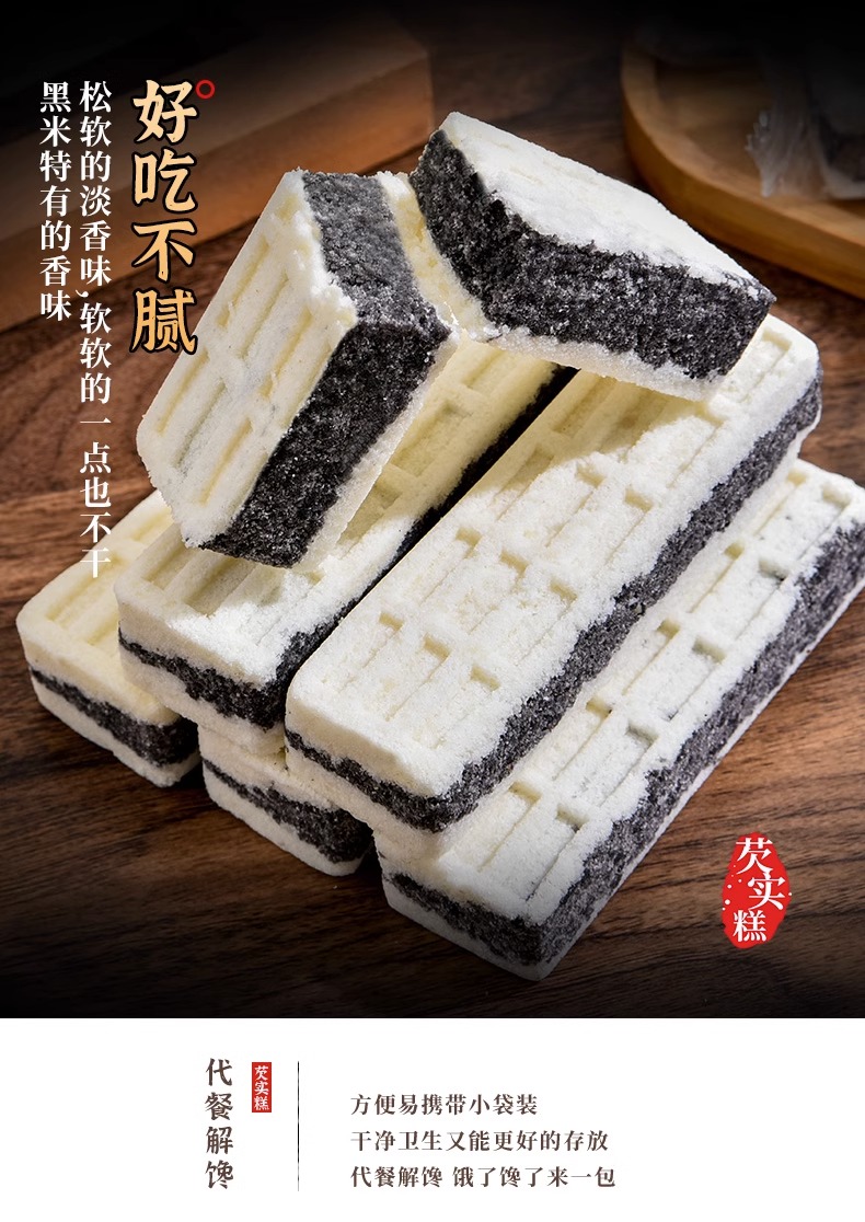 無蔗糖黑米芡實糕欠實米糕海鹽低旗艦店脂減小零食肥面包八珍糕點