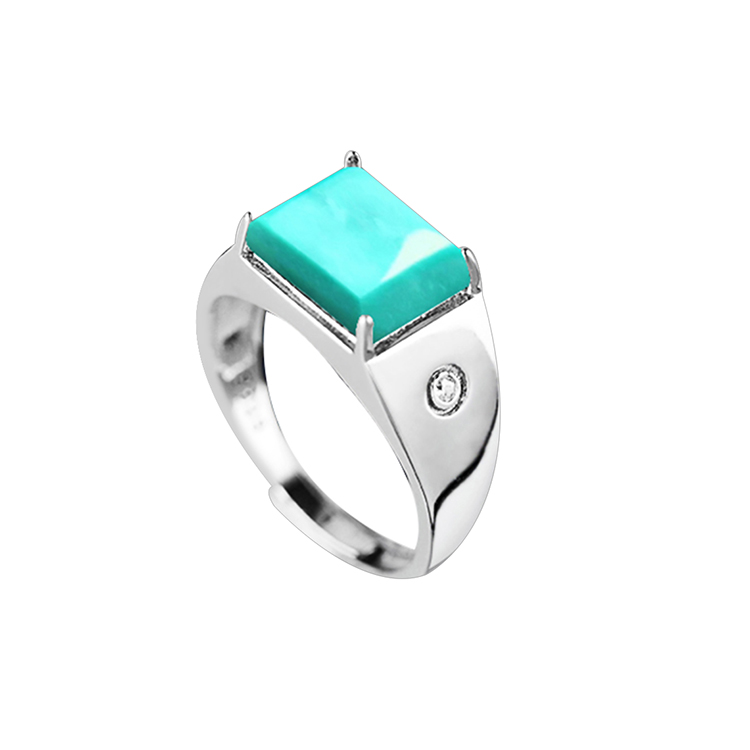 s925空托鑲嵌蜜蠟綠松石方純銀戒指