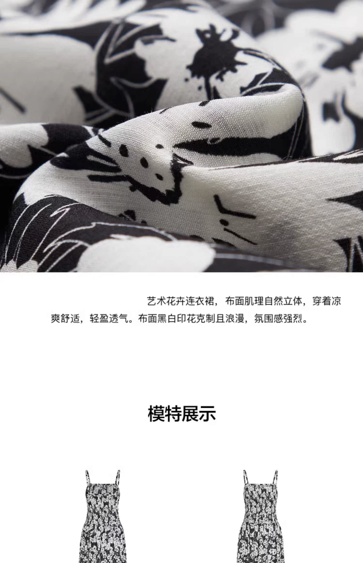 商場同款2023夏季珠鏈蕩領純色性感氣質吊帶通勤連衣裙女士250046