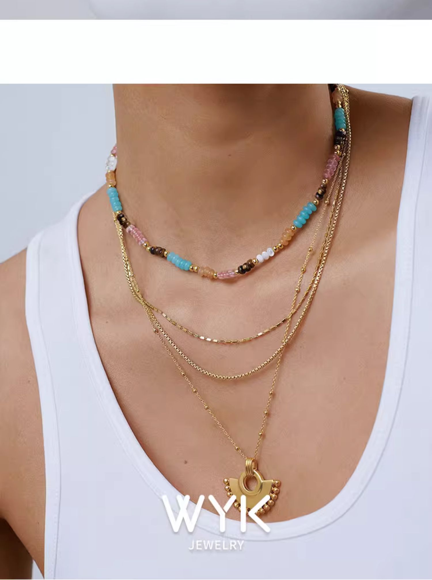 官方正品多巴胺天然彩色串珠虎眼石項鏈女輕奢小眾高級疊戴鎖骨鏈