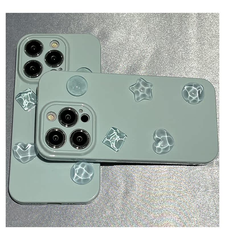 純色立體水晶寶石適用蘋果14手機殼iPhone13ProMax新款14pro女款12防摔11硅膠13Pro網紅小眾創意簡約全包軟殼