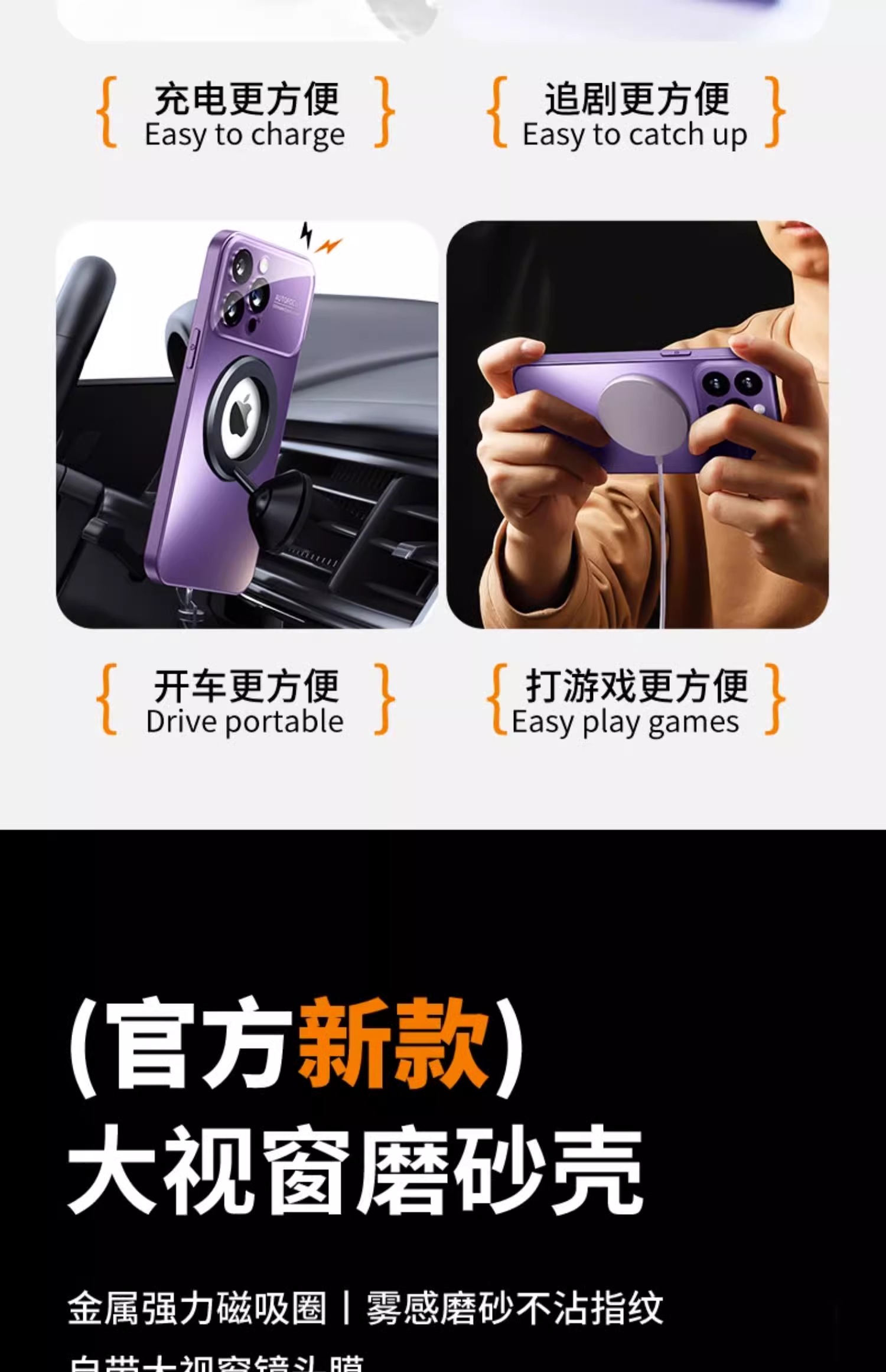 大視窗適用蘋果14手機殼新款磁吸11高級感Magsafe透明女款12磨砂玻璃13promax防摔情侶男plus帶鏡頭膜全包套i