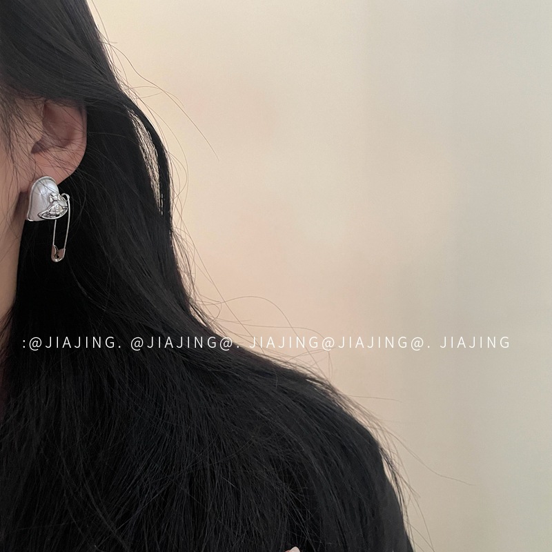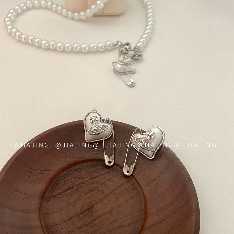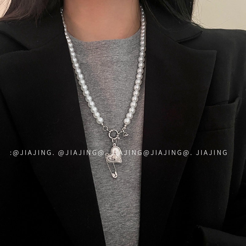 高級感西太后土星回形針珍珠項鏈耳環配飾輕奢風個性小眾設計頸鏈