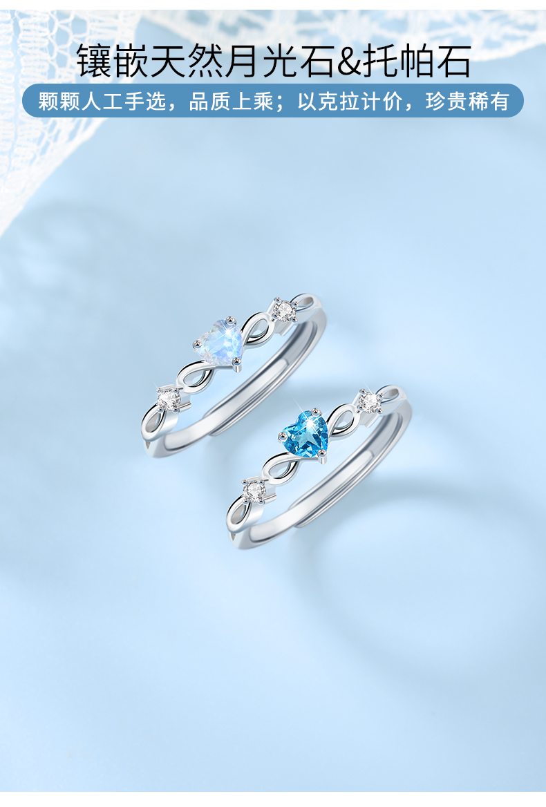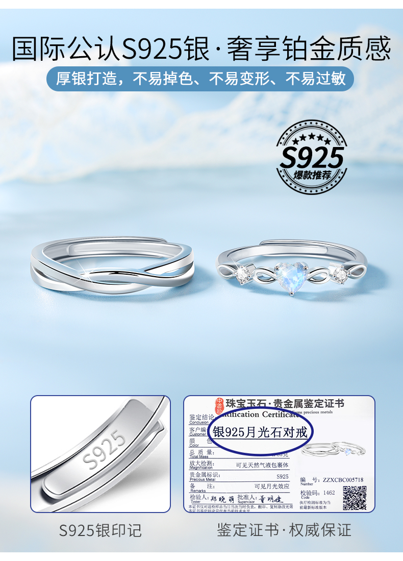 月光戀人對戒情侶款月光石純銀戒指小眾設計刻字紀念禮物送男女友