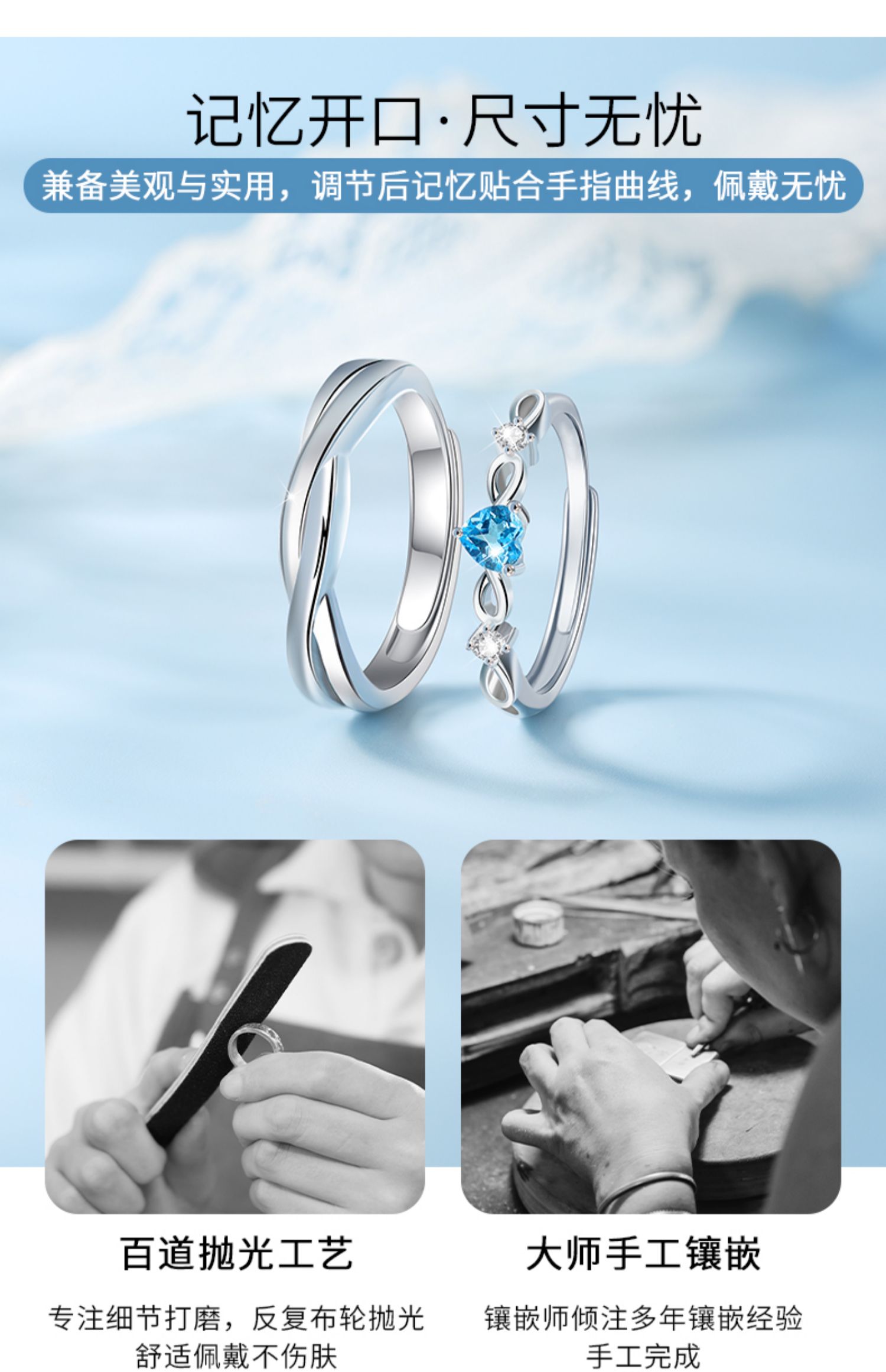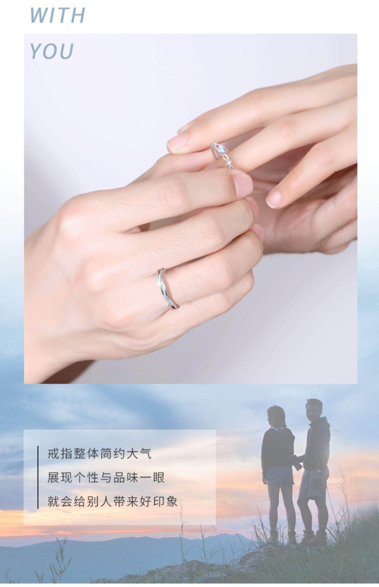 羽你相伴情侶款純銀一輕奢小眾對戒