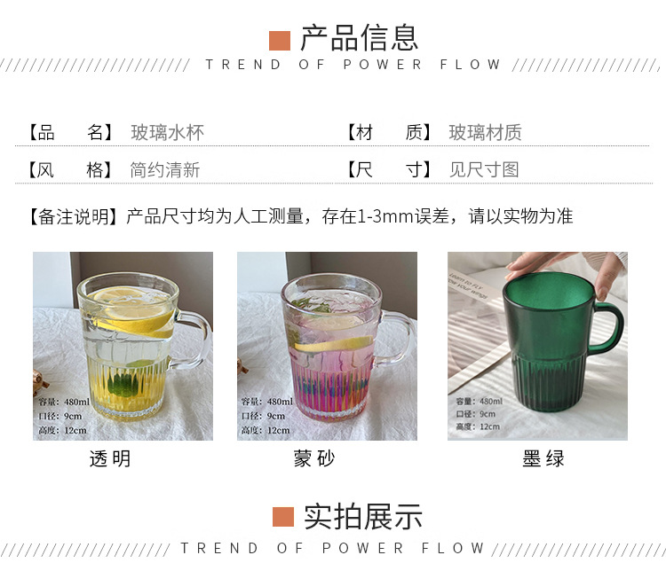 ins風帶把手玻璃杯冰美式拿鐵咖啡杯水果茶杯家用果汁杯冷飲杯子