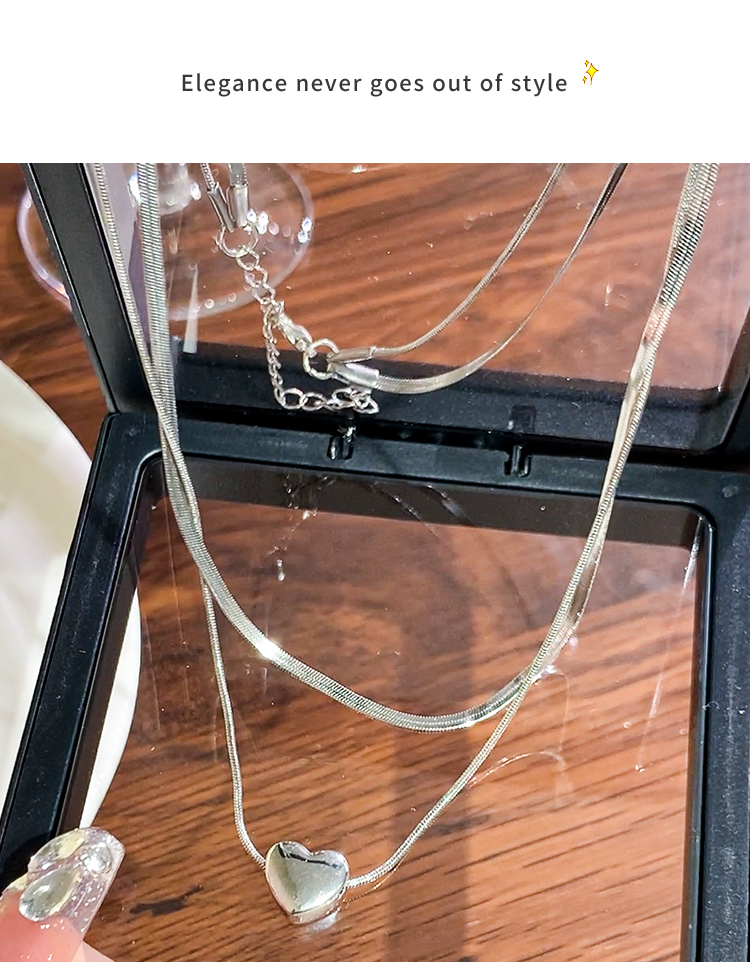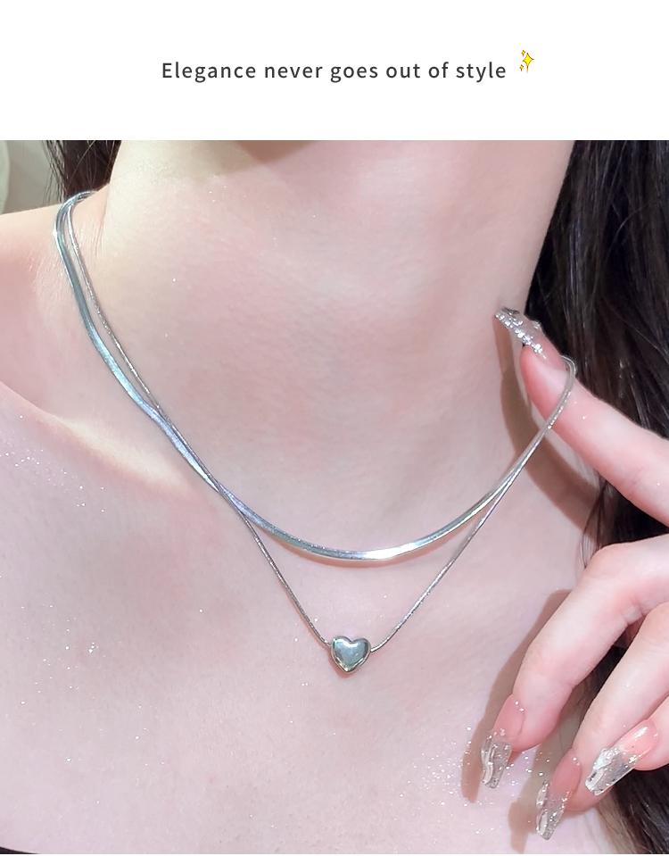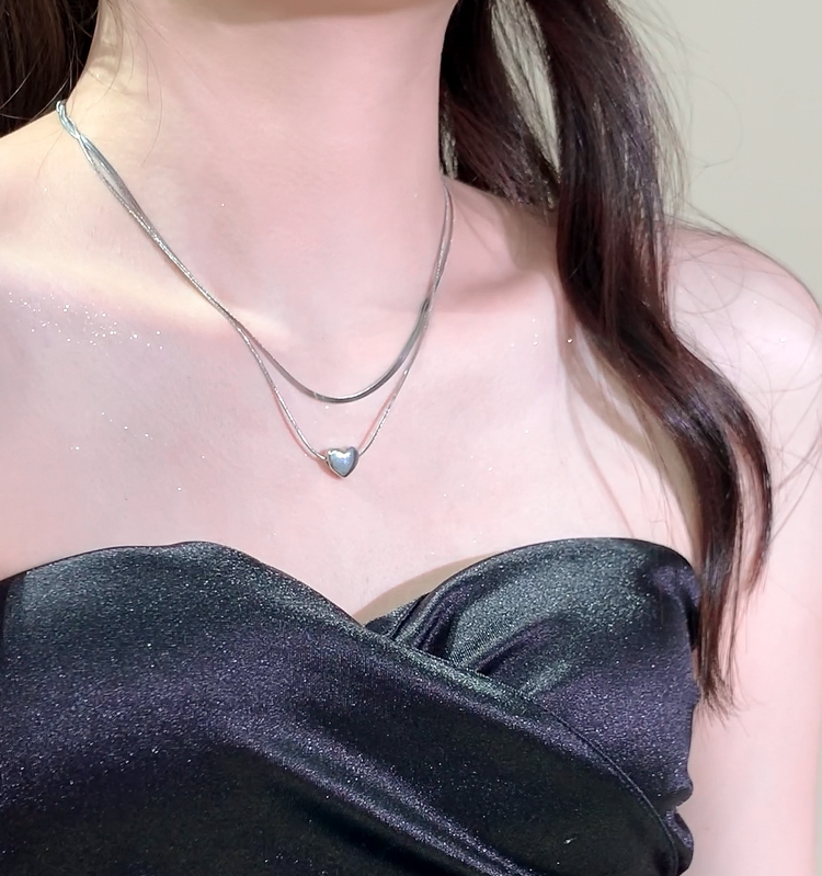 愛心蛇骨鏈項鏈女款鈦鋼項鏈輕奢小眾鎖骨鏈女高級感頸鏈雙層首飾